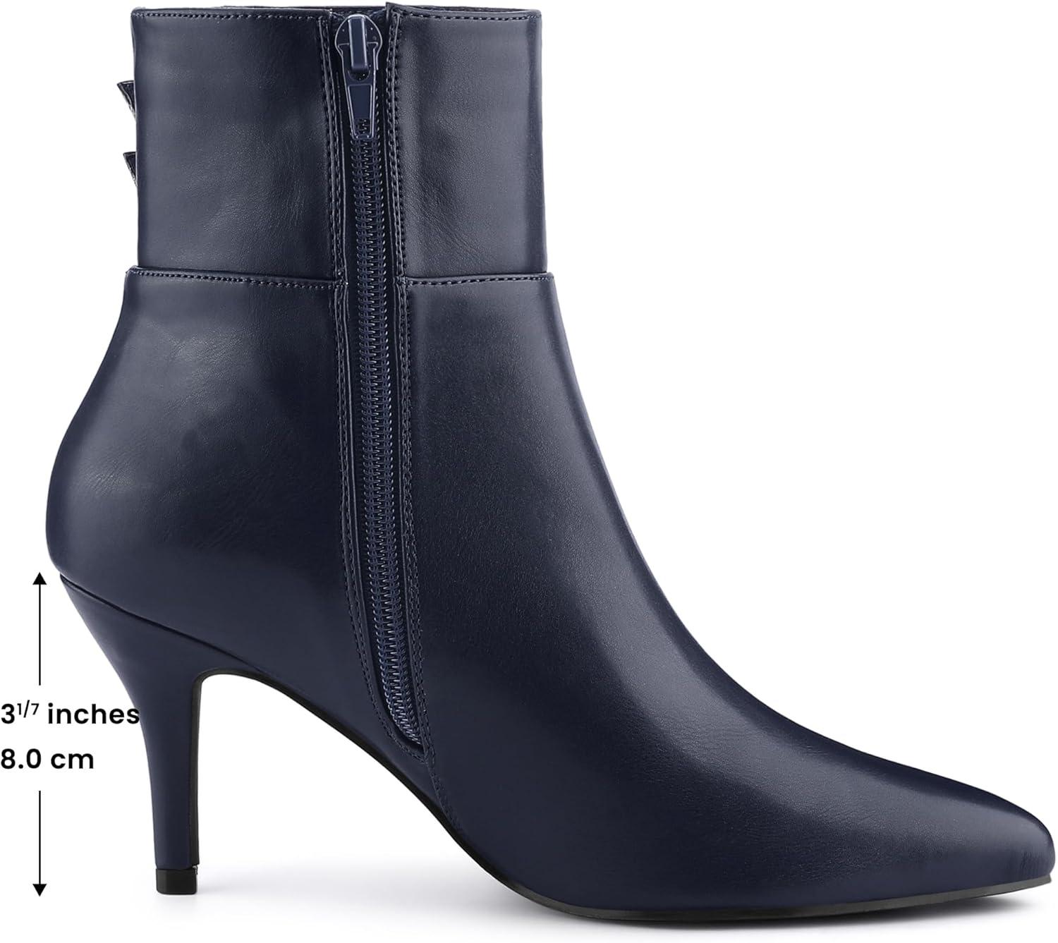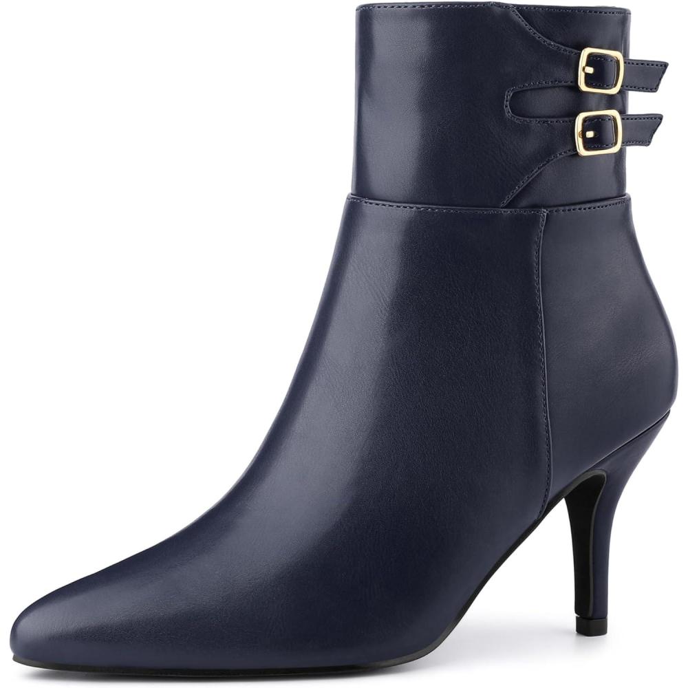 Allegra K Women’s Pointed Toe Buckle Stiletto Heels Ankle Boots(Dark Blue)