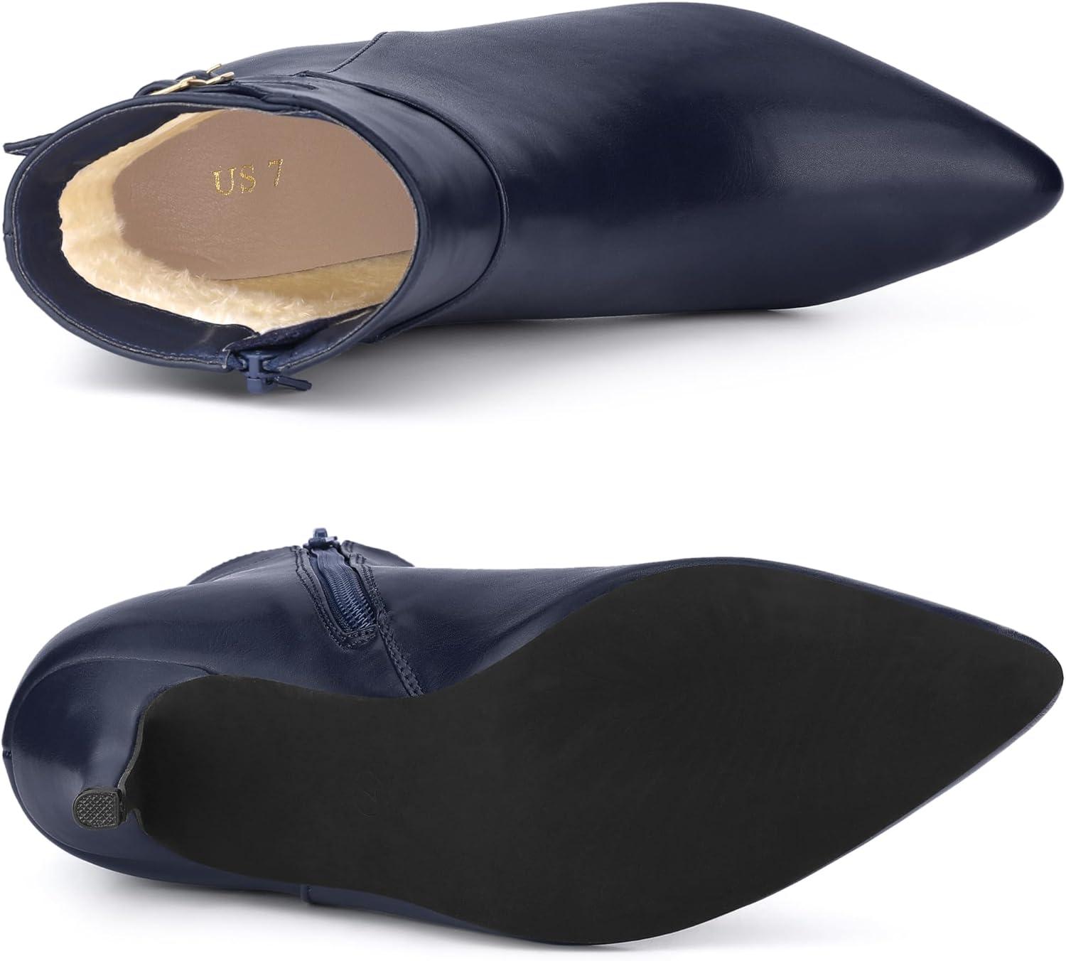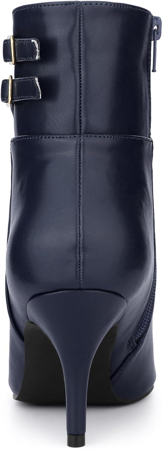 Allegra K Women's Pointed Toe Buckle Stiletto Heels Ankle Boots(Dark Blue)