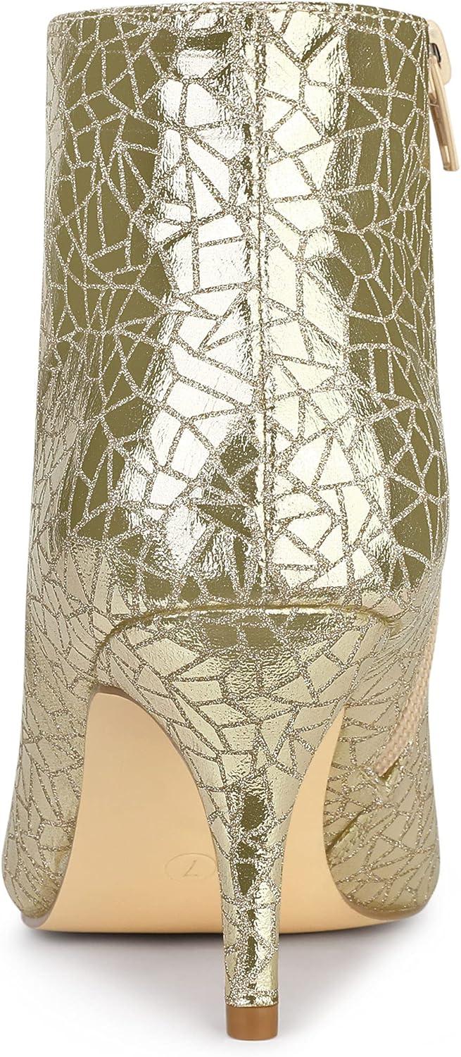 Allegra K Women’s Pointed Toe Buckle Stiletto Heels Ankle Boots(Gold)