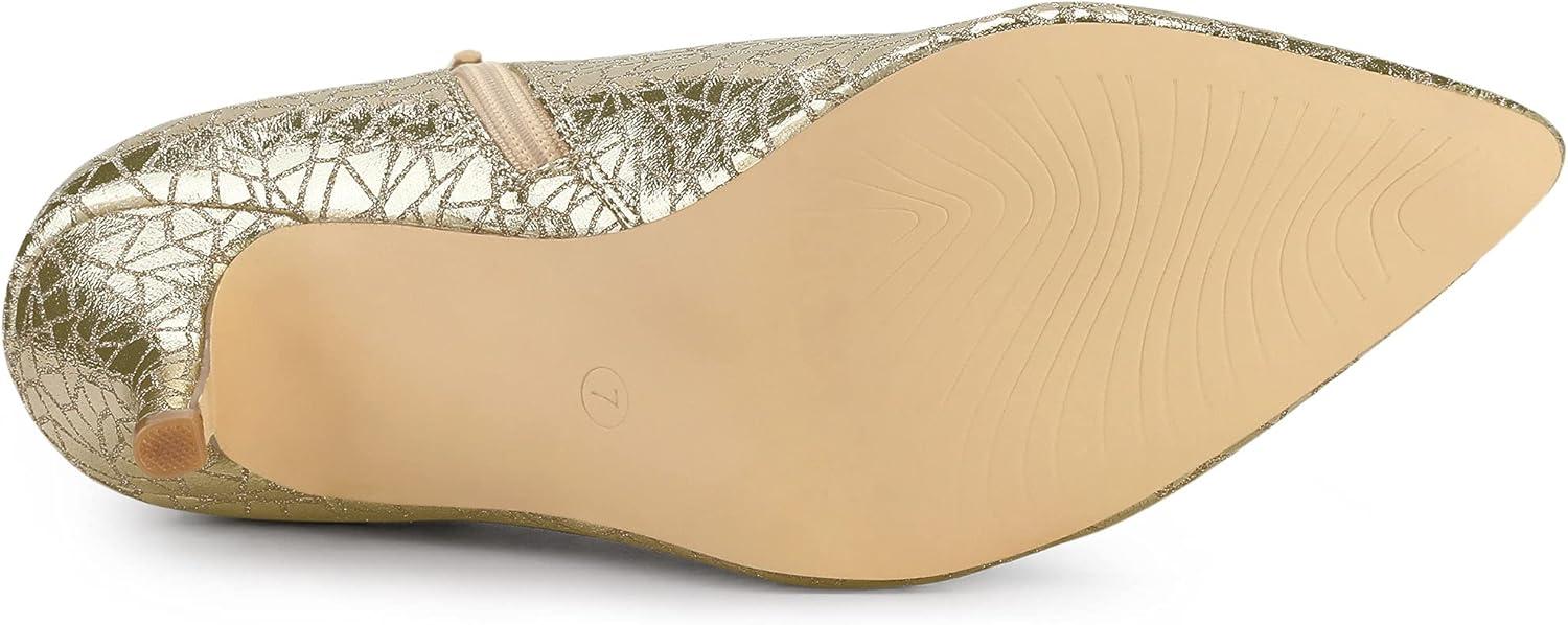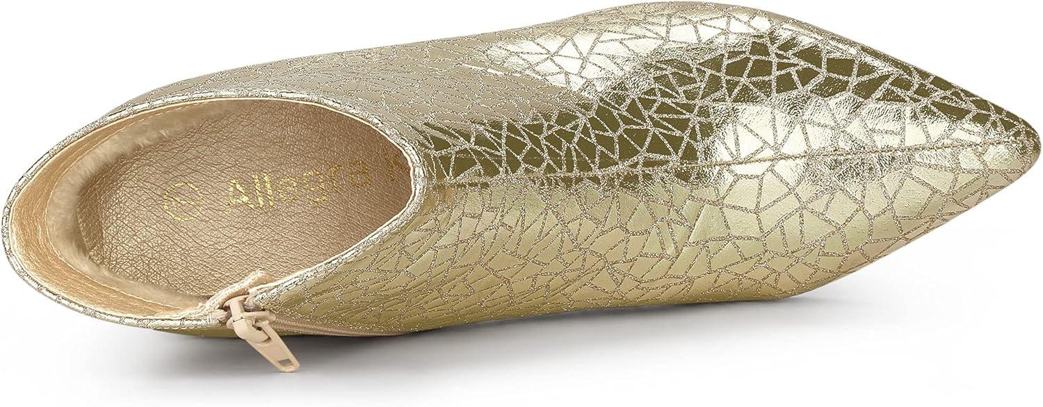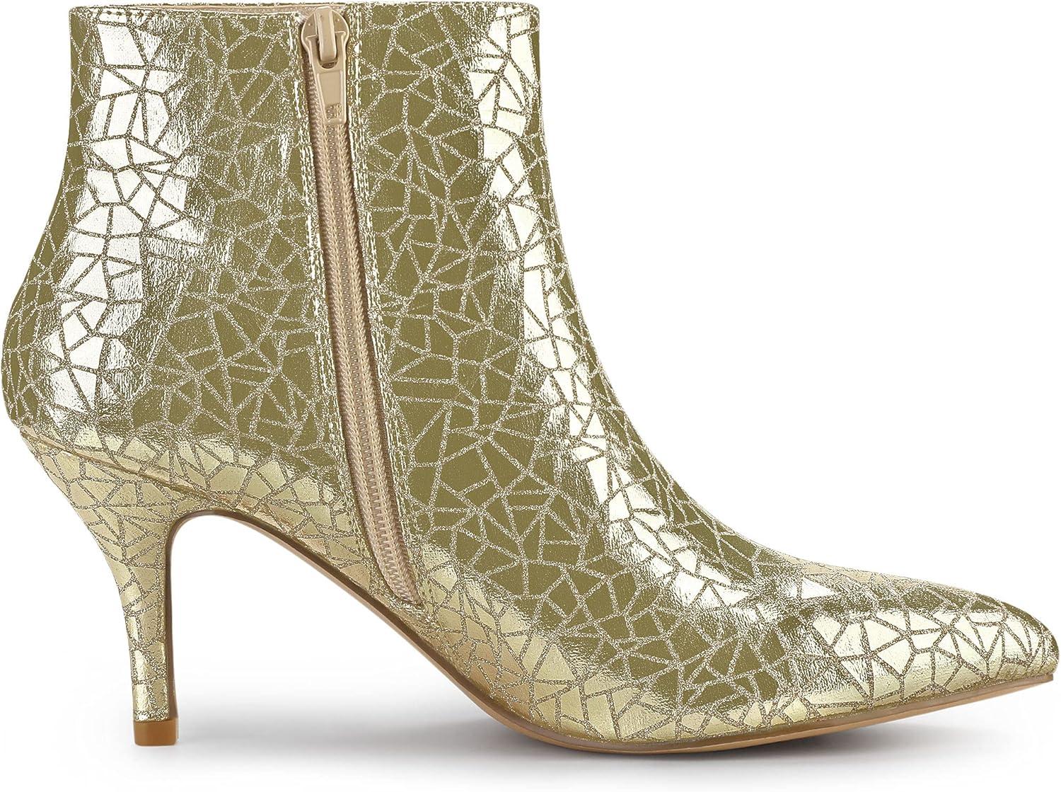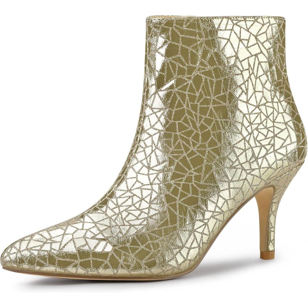 Allegra K Women's Pointed Toe Buckle Stiletto Heels Ankle Boots(Gold)