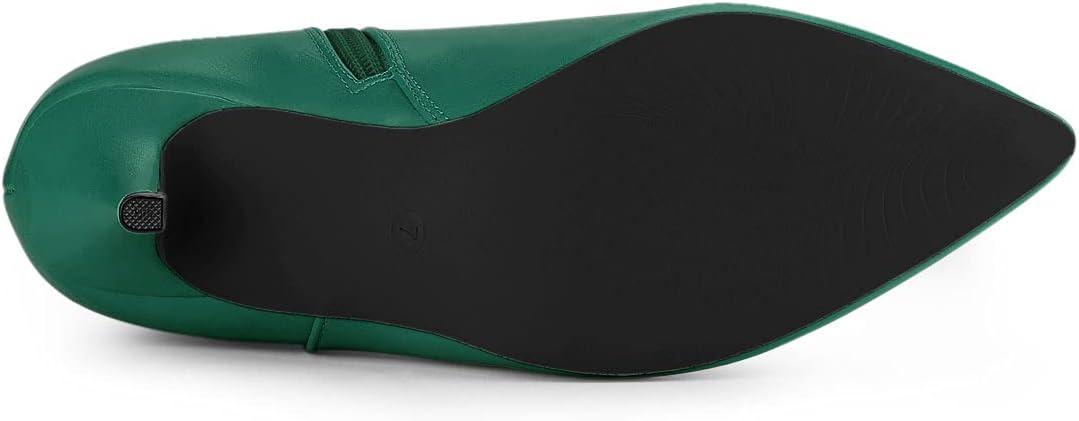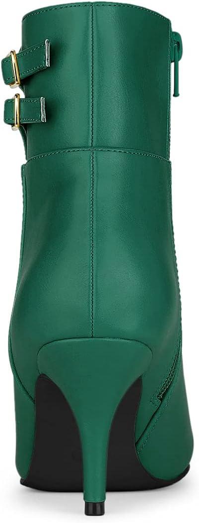 Allegra K Women's Pointed Toe Buckle Stiletto Heels Ankle Boots(Green)