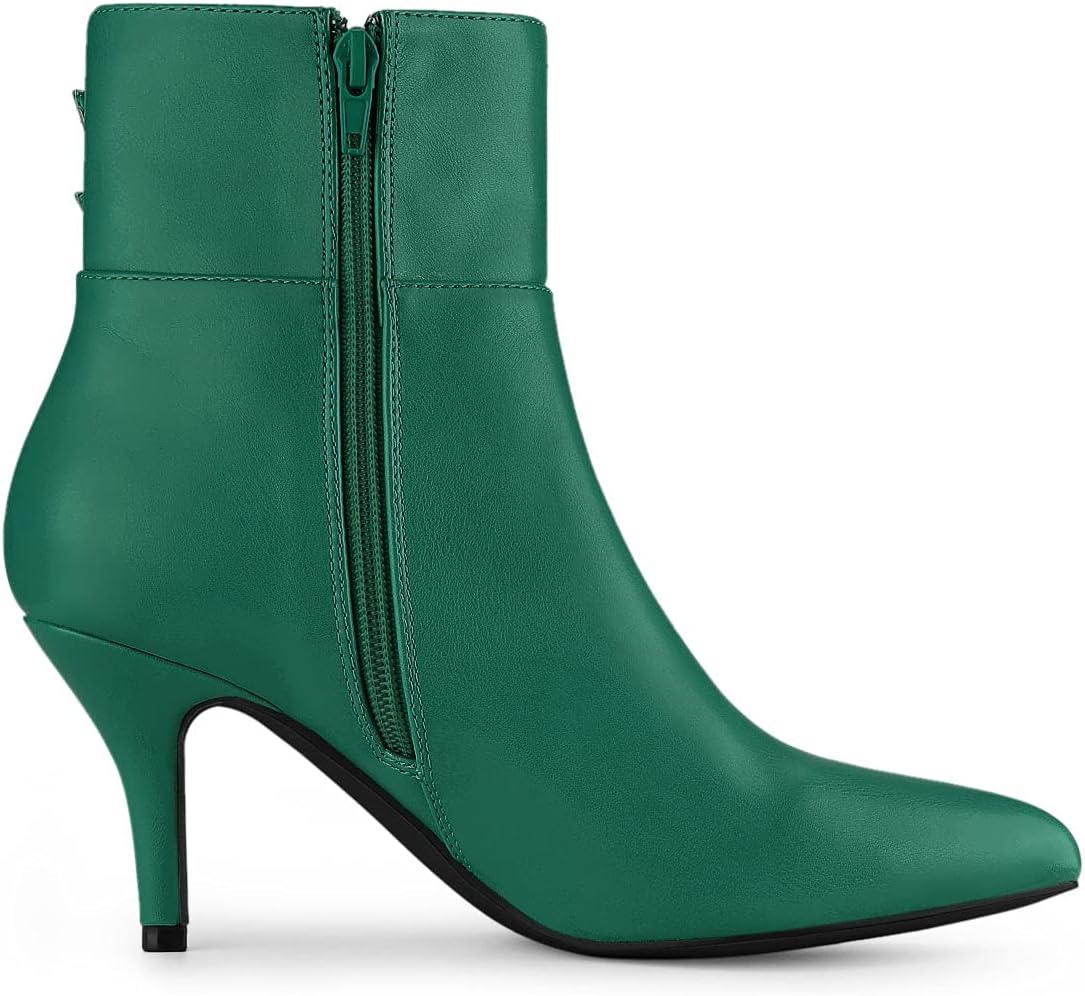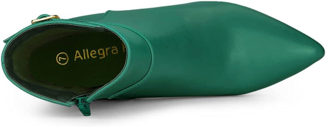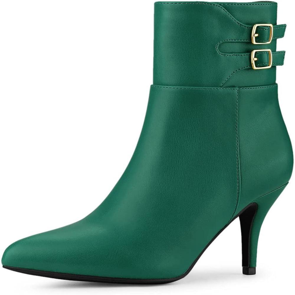 Allegra K Women’s Pointed Toe Buckle Stiletto Heels Ankle Boots(Green)
