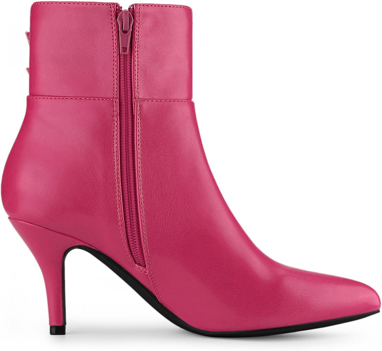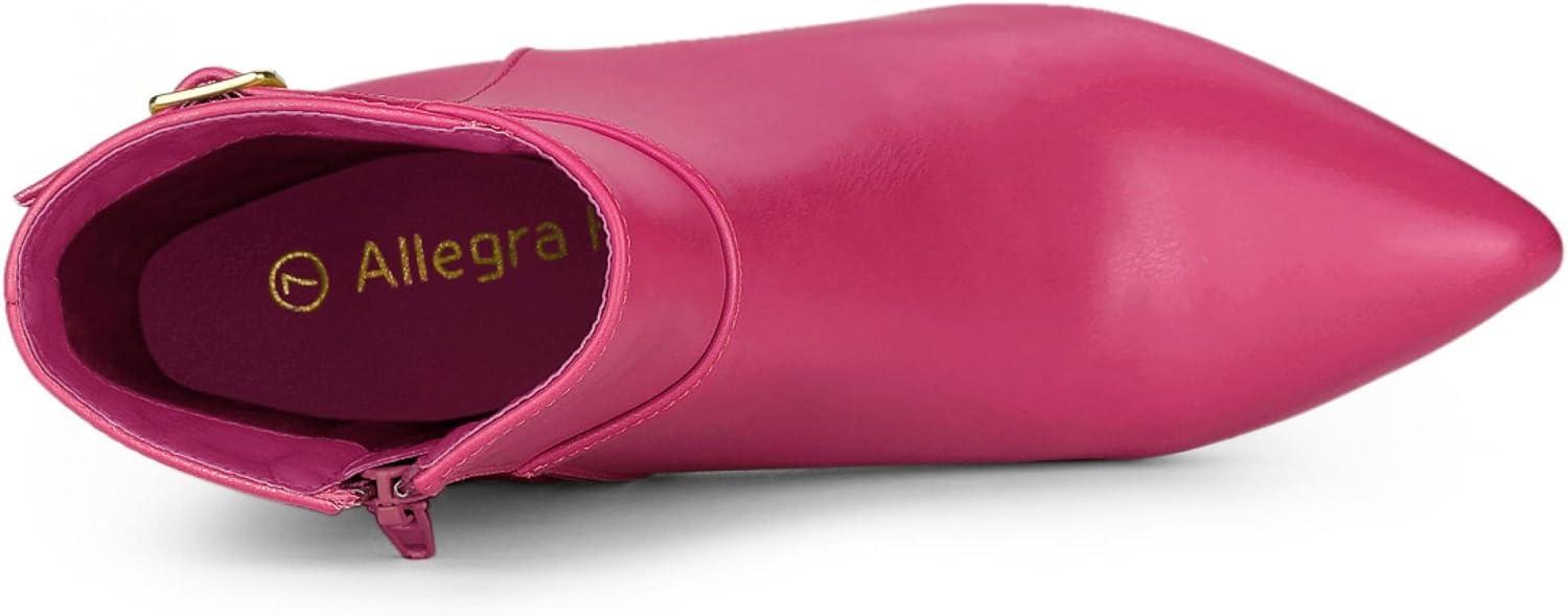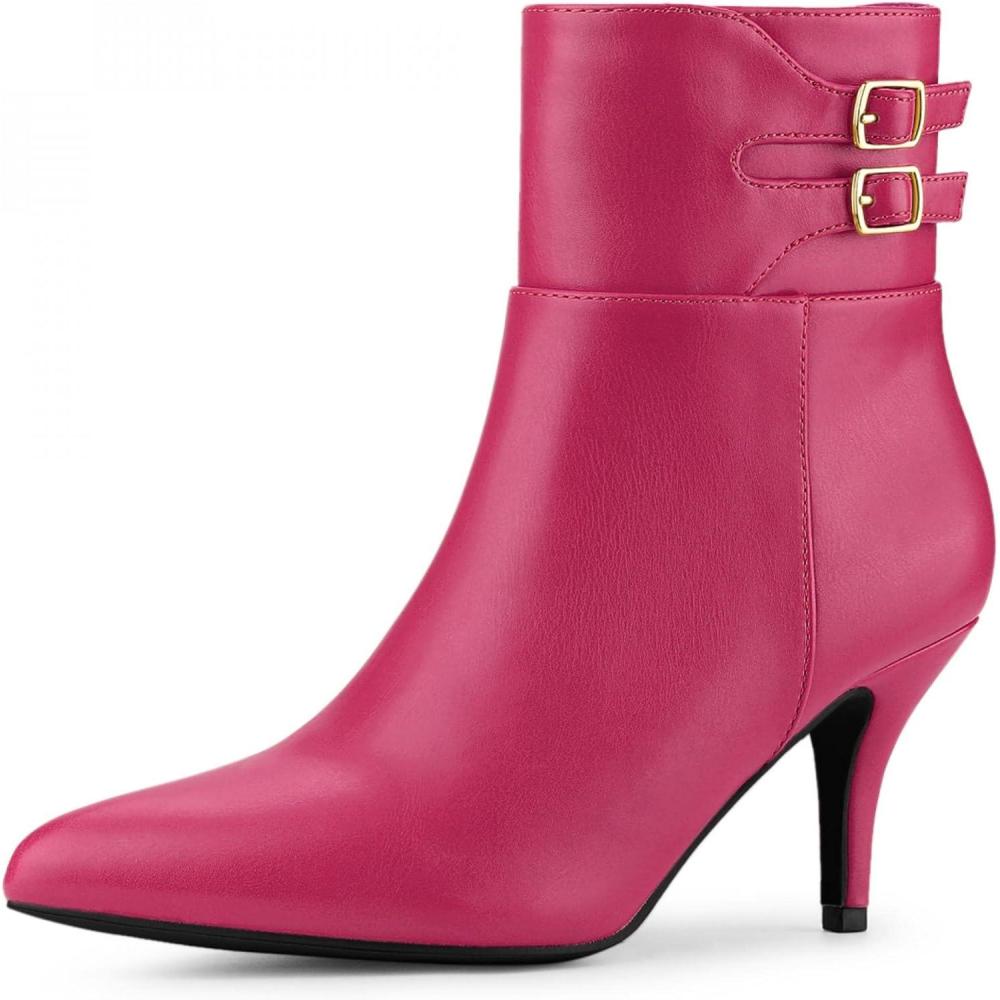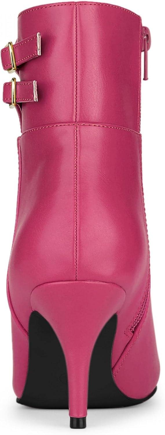 Allegra K Women's Pointed Toe Buckle Stiletto Heels Ankle Boots(Hot Pink)