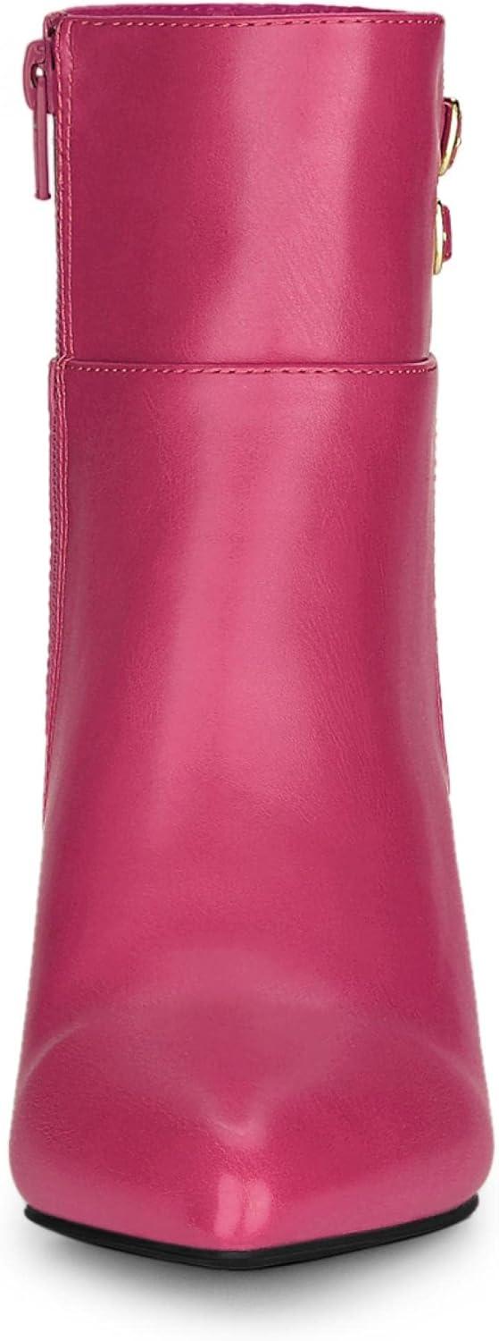 Allegra K Women’s Pointed Toe Buckle Stiletto Heels Ankle Boots(Hot Pink)