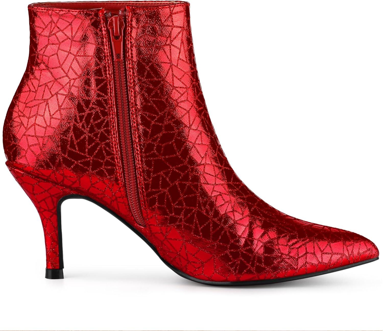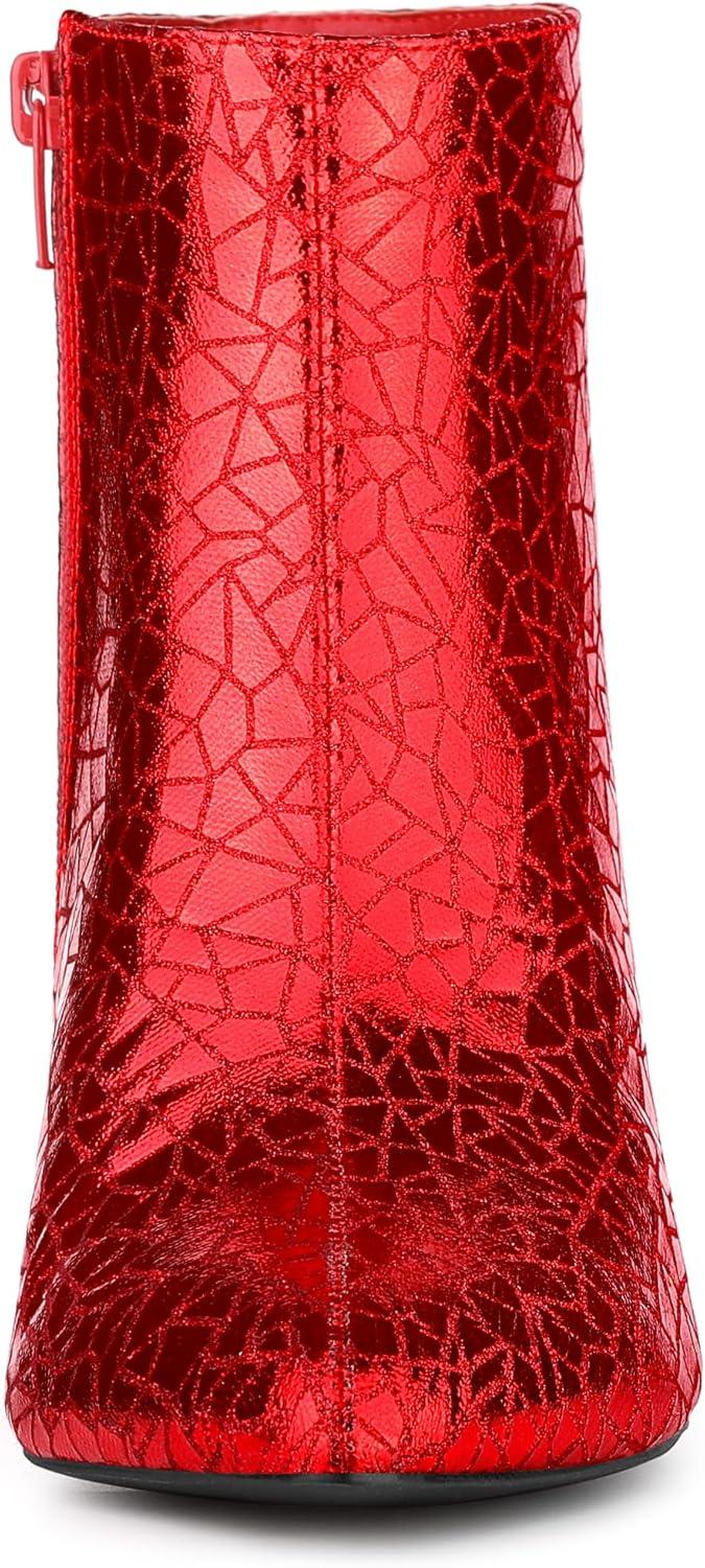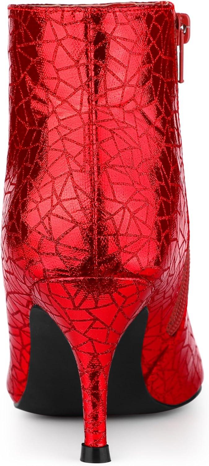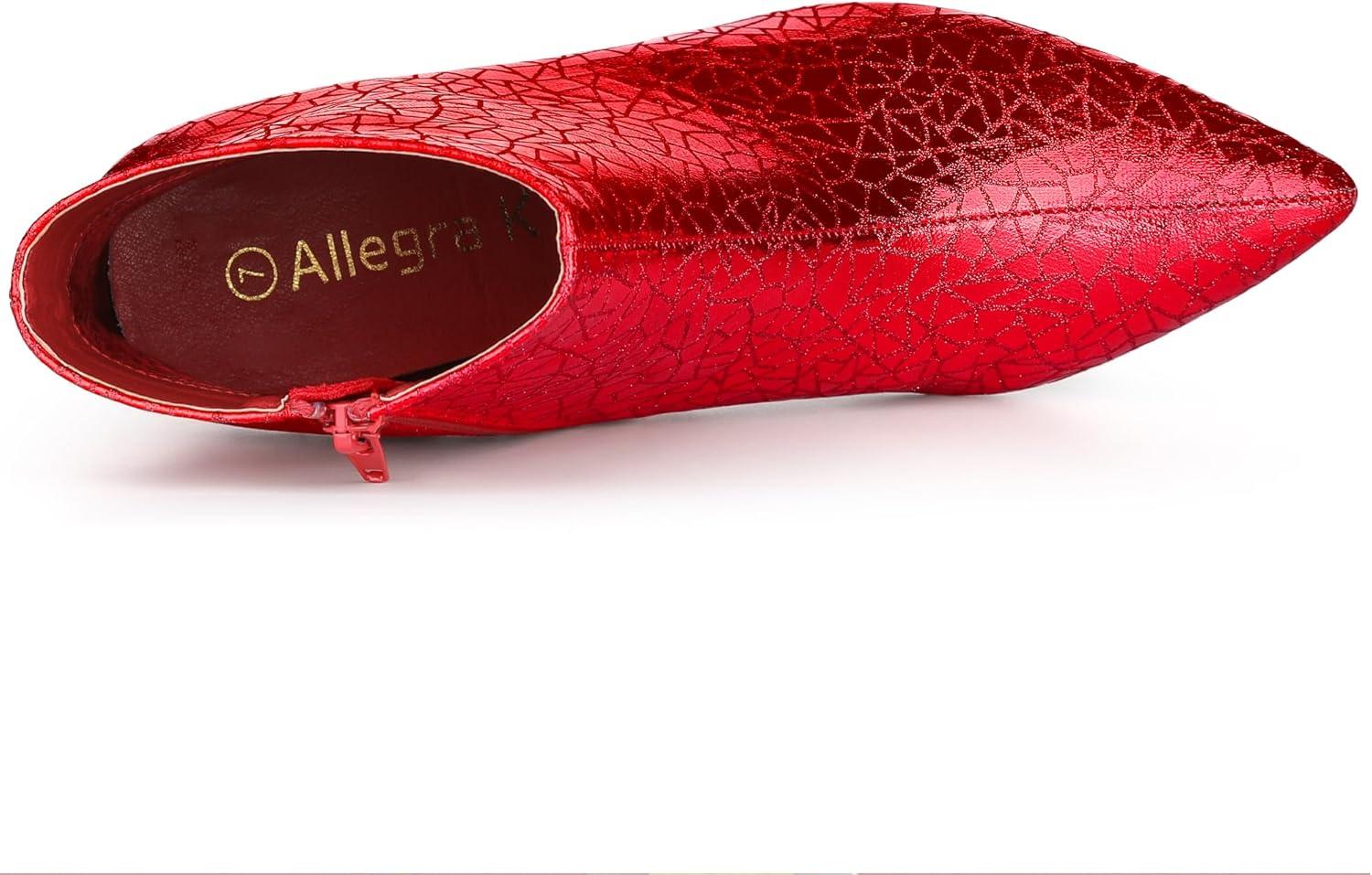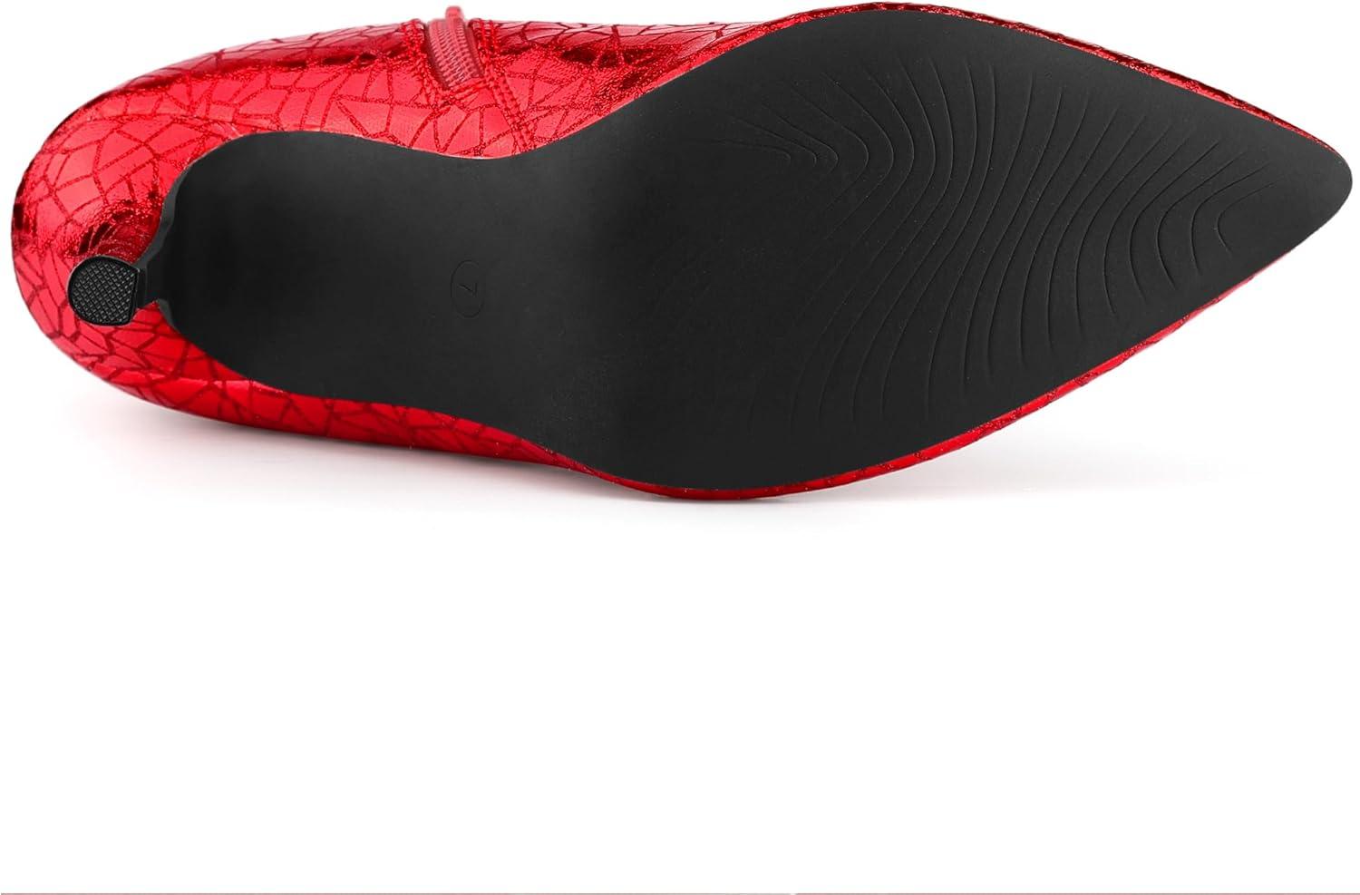Allegra K Women's Pointed Toe Buckle Stiletto Heels Ankle Boots(Red)