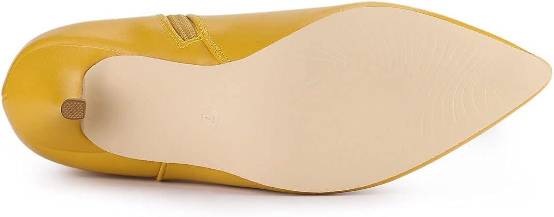 Allegra K Women's Pointed Toe Buckle Stiletto Heels Ankle Boots(Yellow)