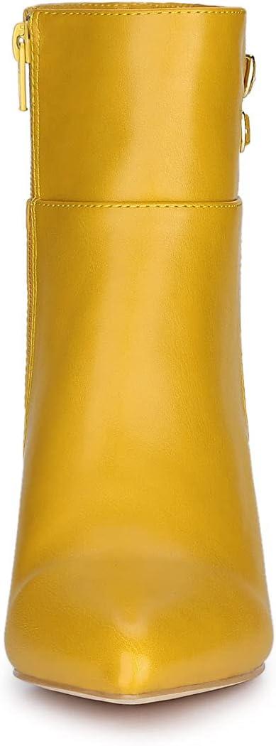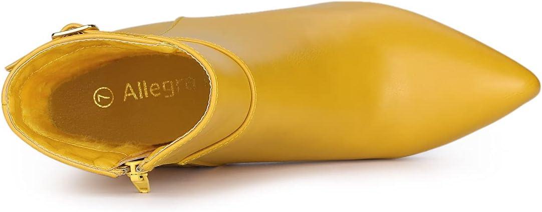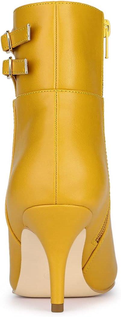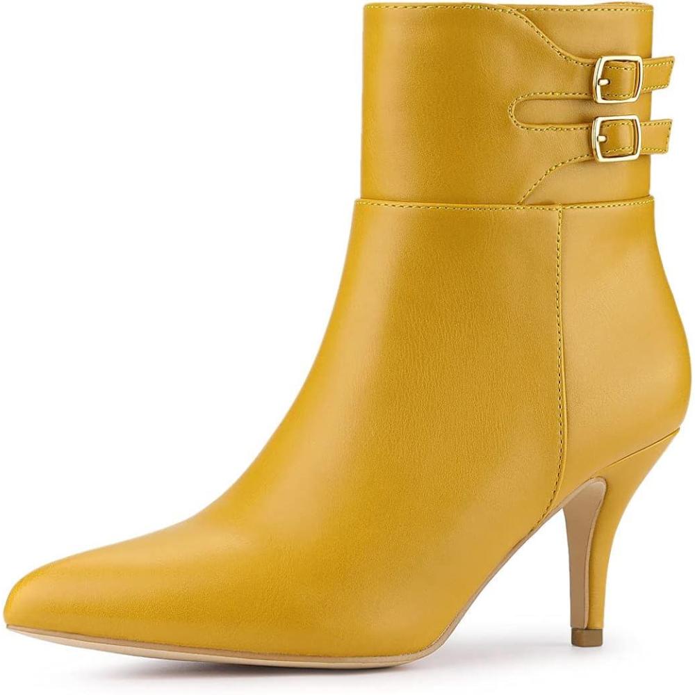 Allegra K Women’s Pointed Toe Buckle Stiletto Heels Ankle Boots(Yellow)