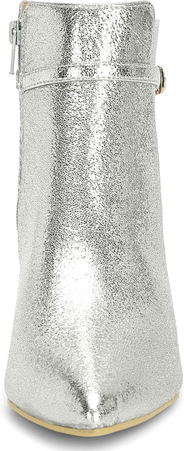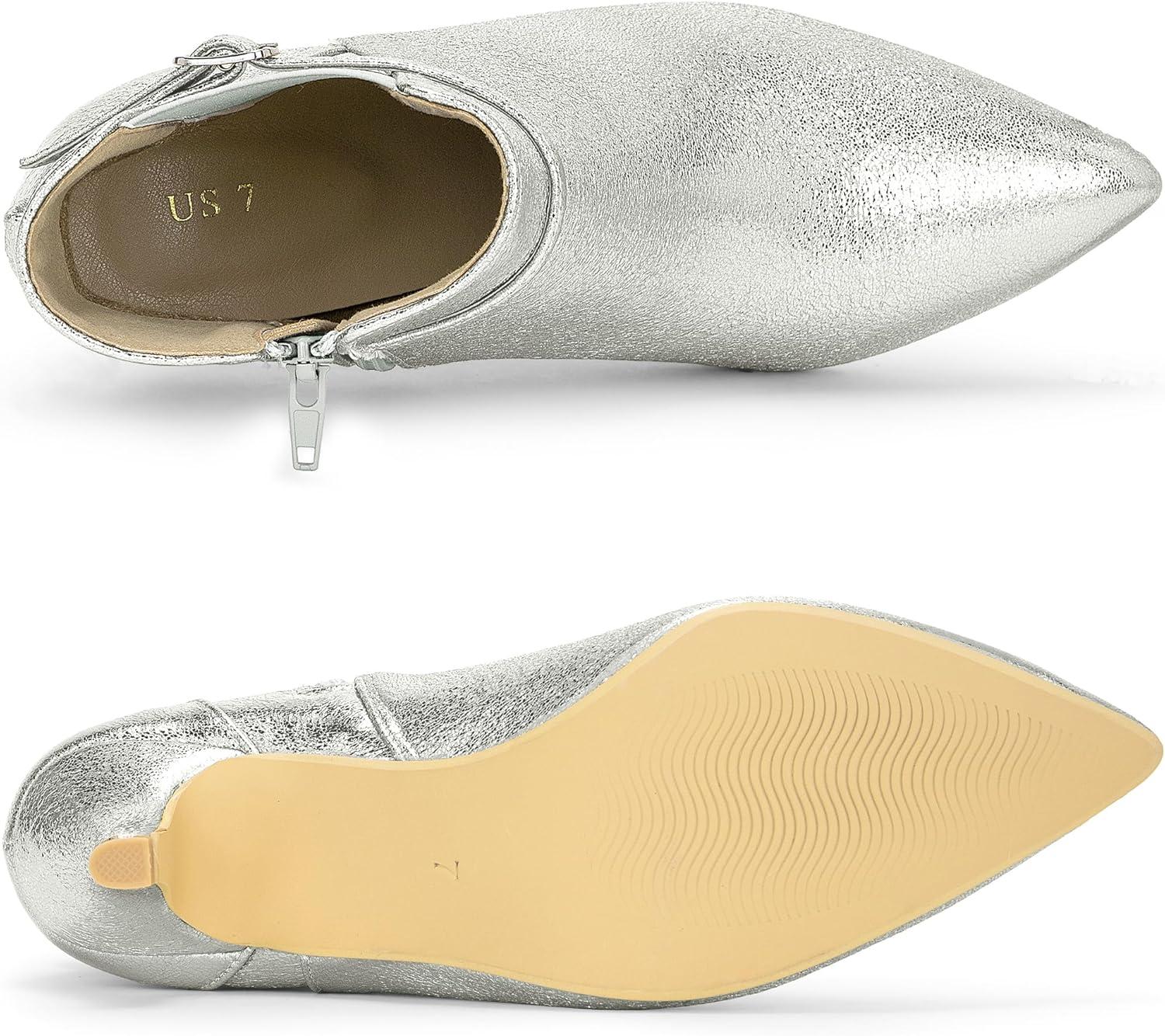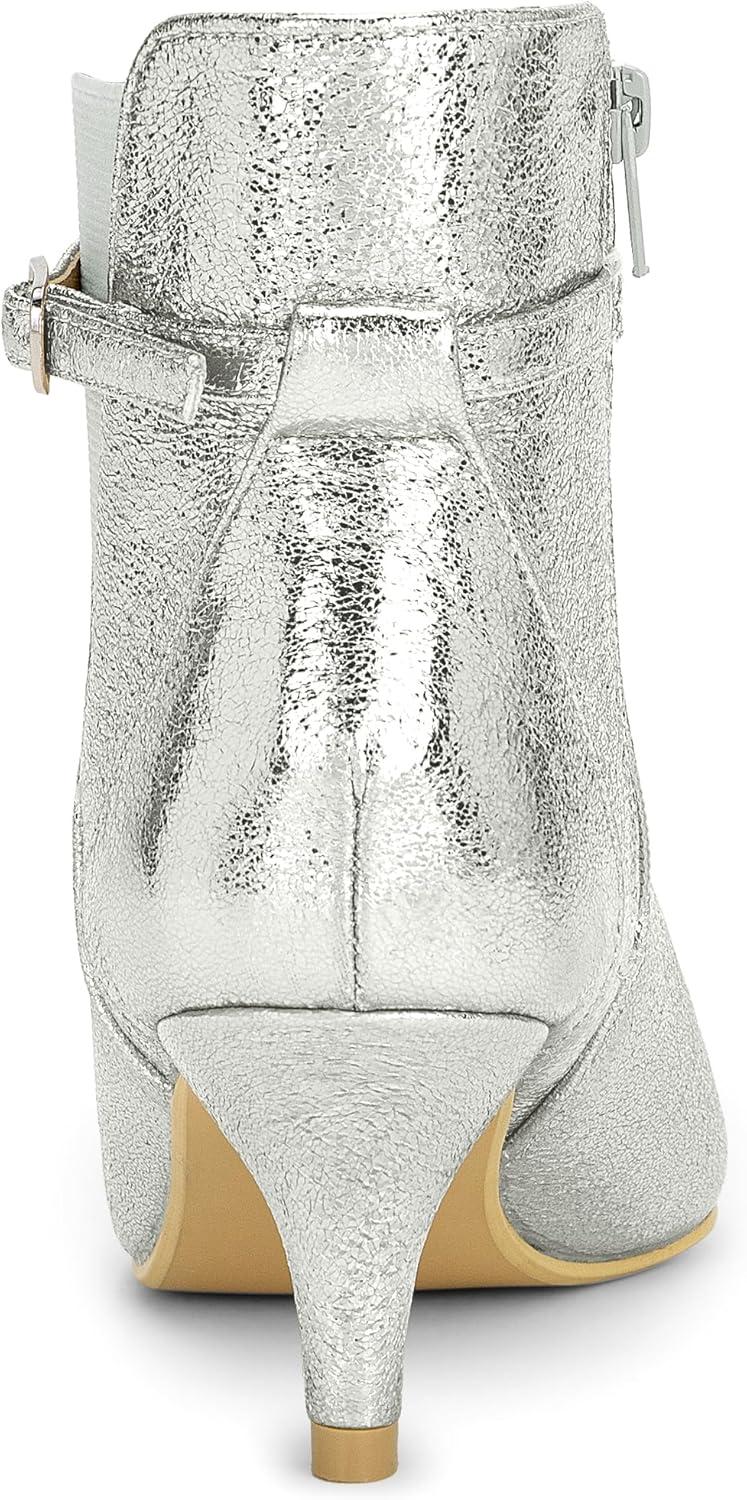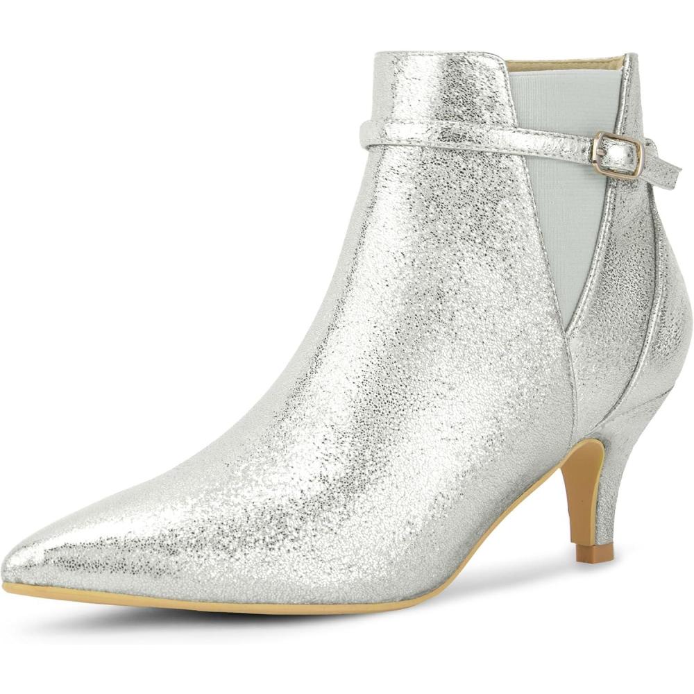 Allegra K Women’s Pointed Toe Chelsea Kitten Heels Ankle Boots(Silver)