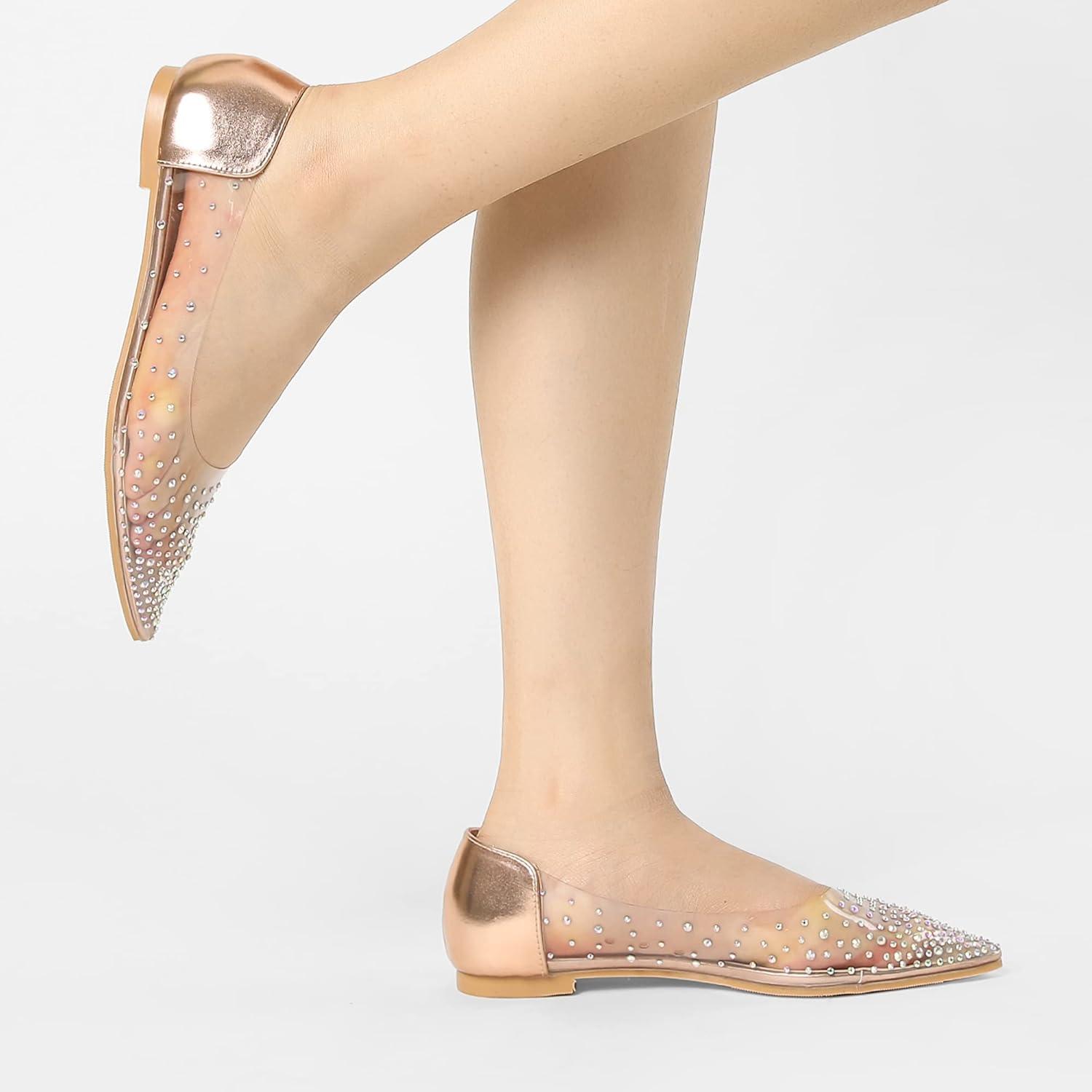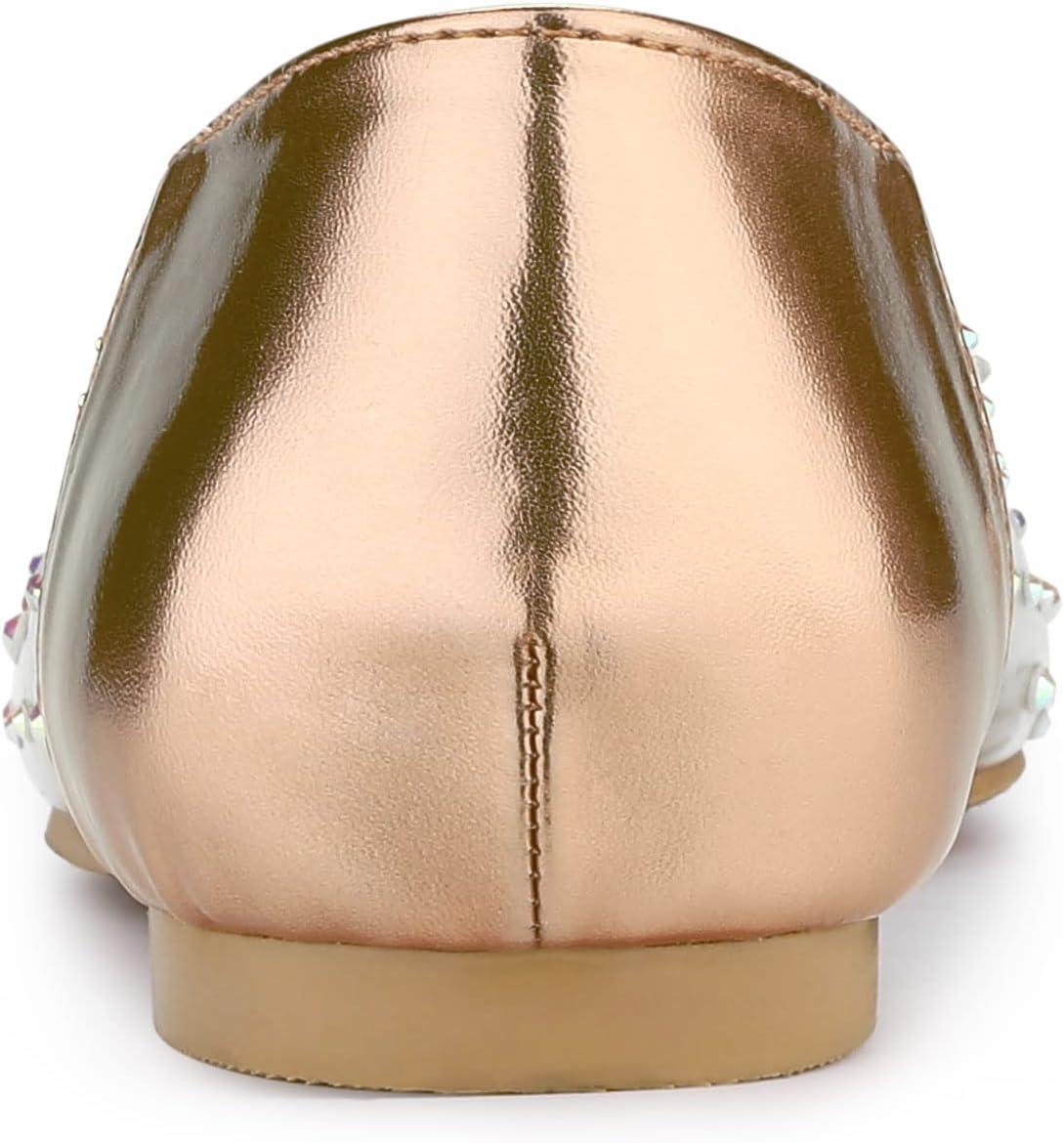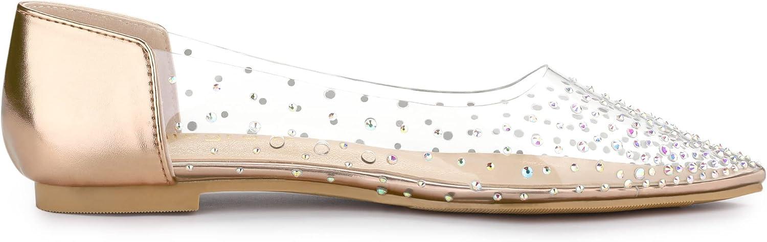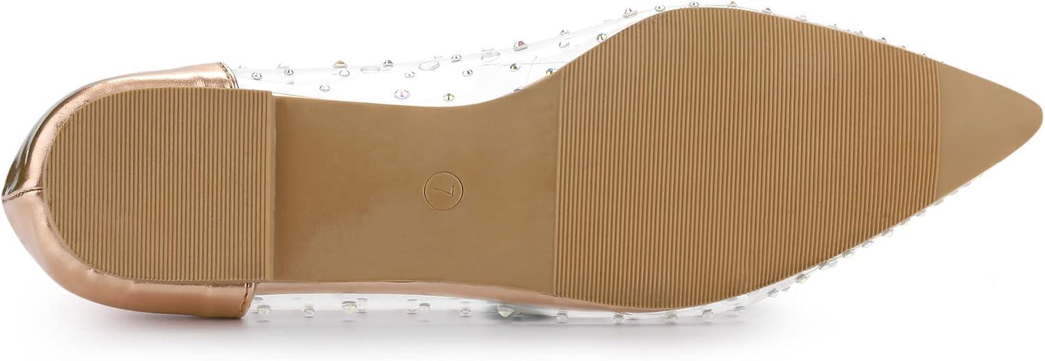 Allegra K Women’s Pointed Toe Clear Rhinestone Ballet Flats(Champagne Gold)