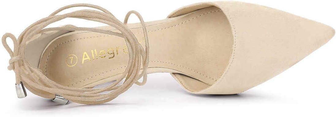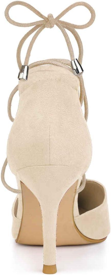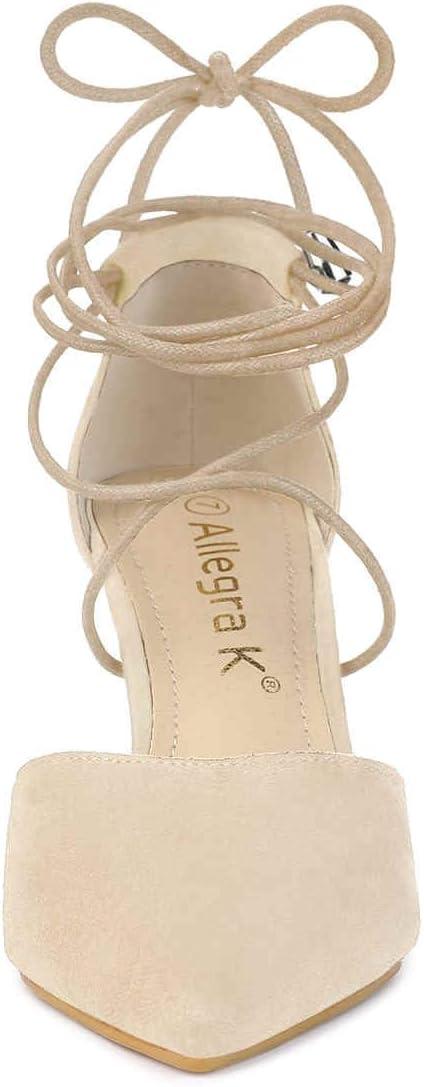 Allegra K Women’s Pointed Toe Dress Pumps Lace Up Stiletto Heels Sandals(Beige)