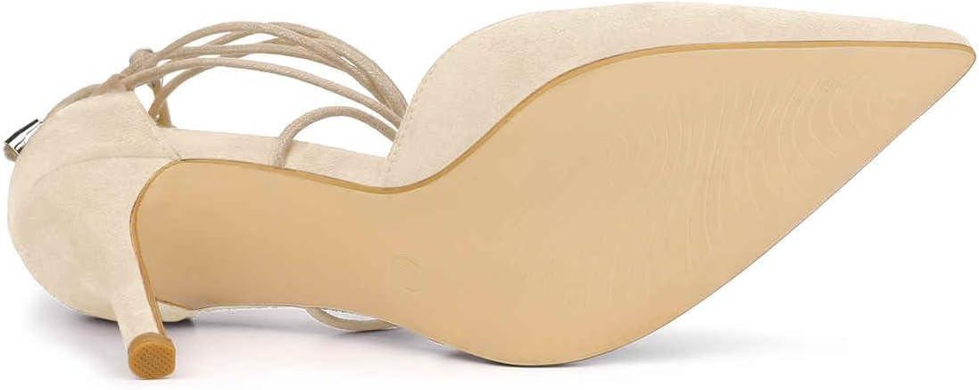 Allegra K Women's Pointed Toe Dress Pumps Lace Up Stiletto Heels Sandals(Beige)