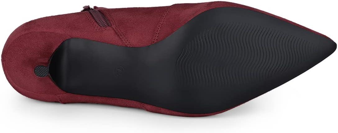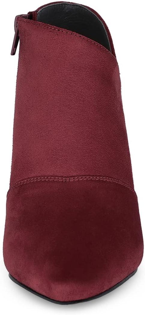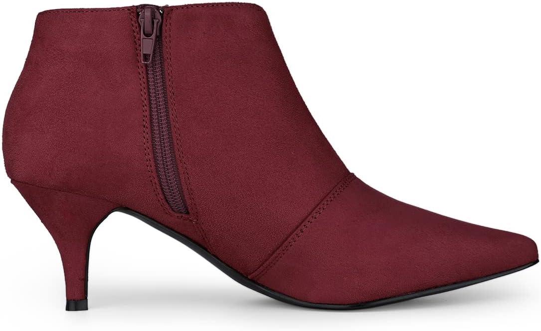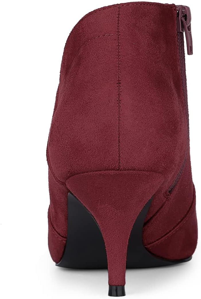 Allegra K Women’s Pointed Toe Kitten Heel Cutout Ankle Boots(Burgundy)