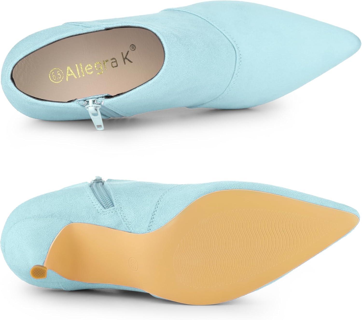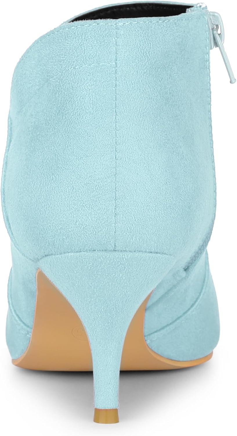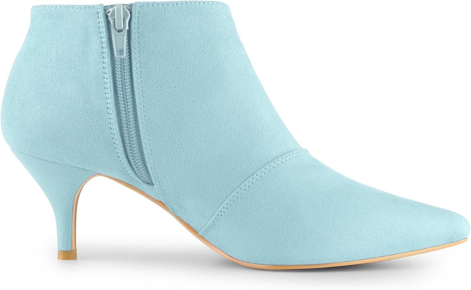 Allegra K Women's Pointed Toe Kitten Heel Cutout Ankle Boots(Sky Blue)
