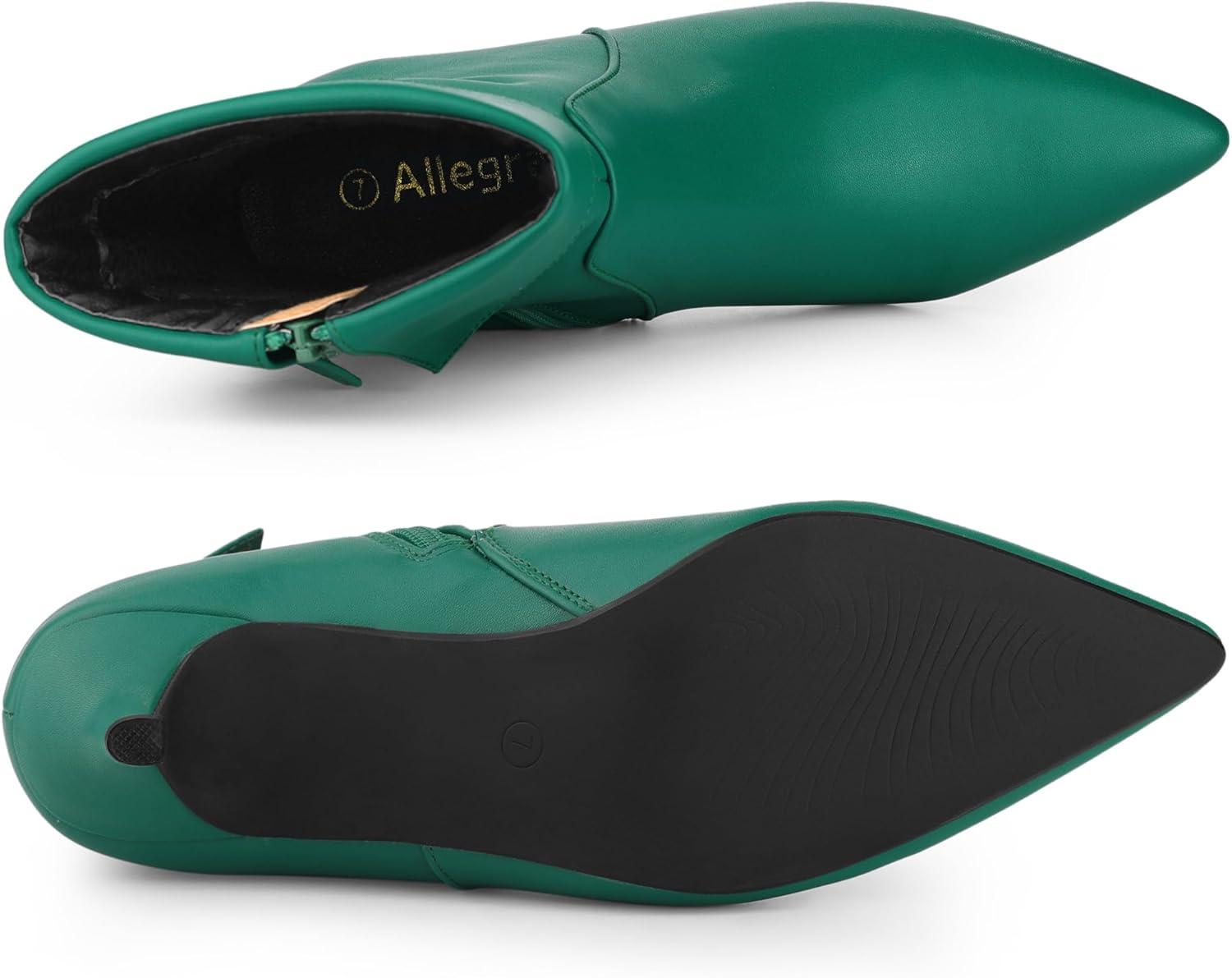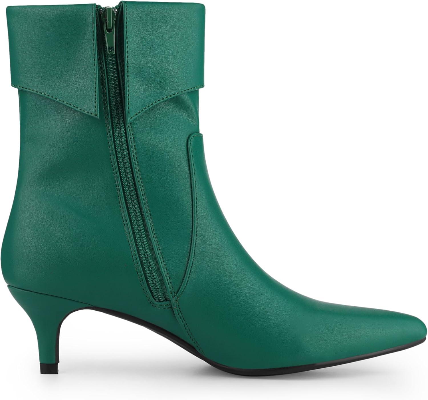 Allegra K Women's Pointed Toe Side Zip Kitten Heel Ankle Boots(Green)