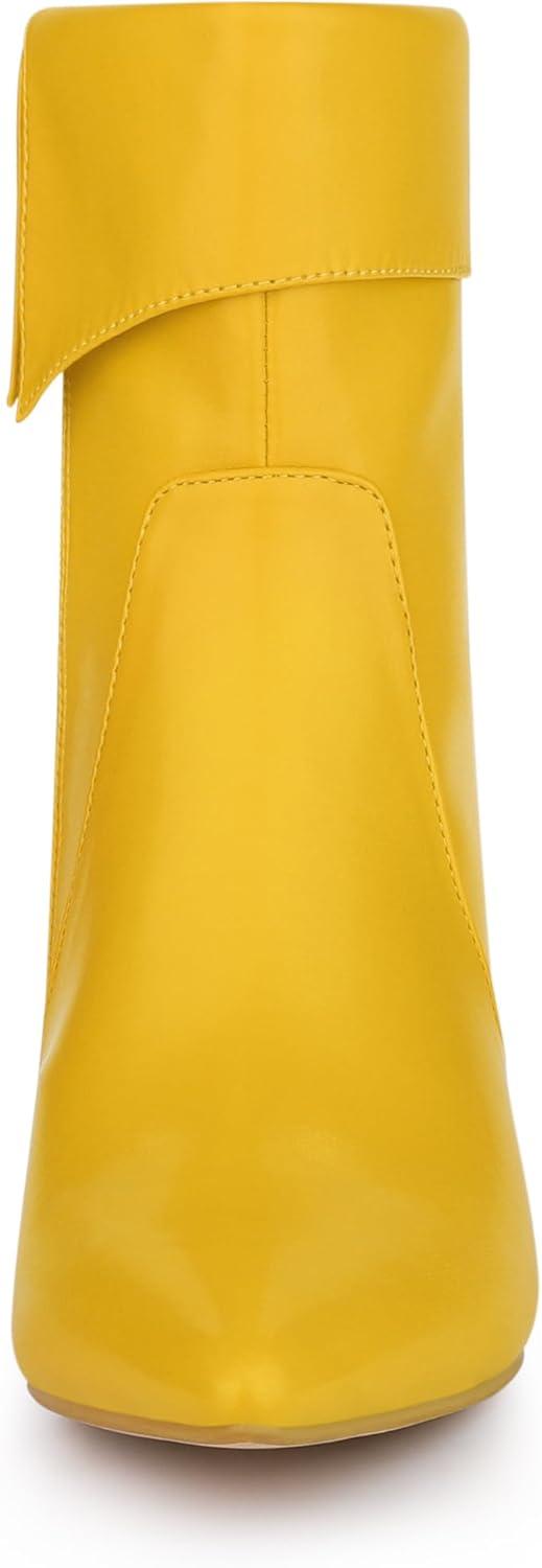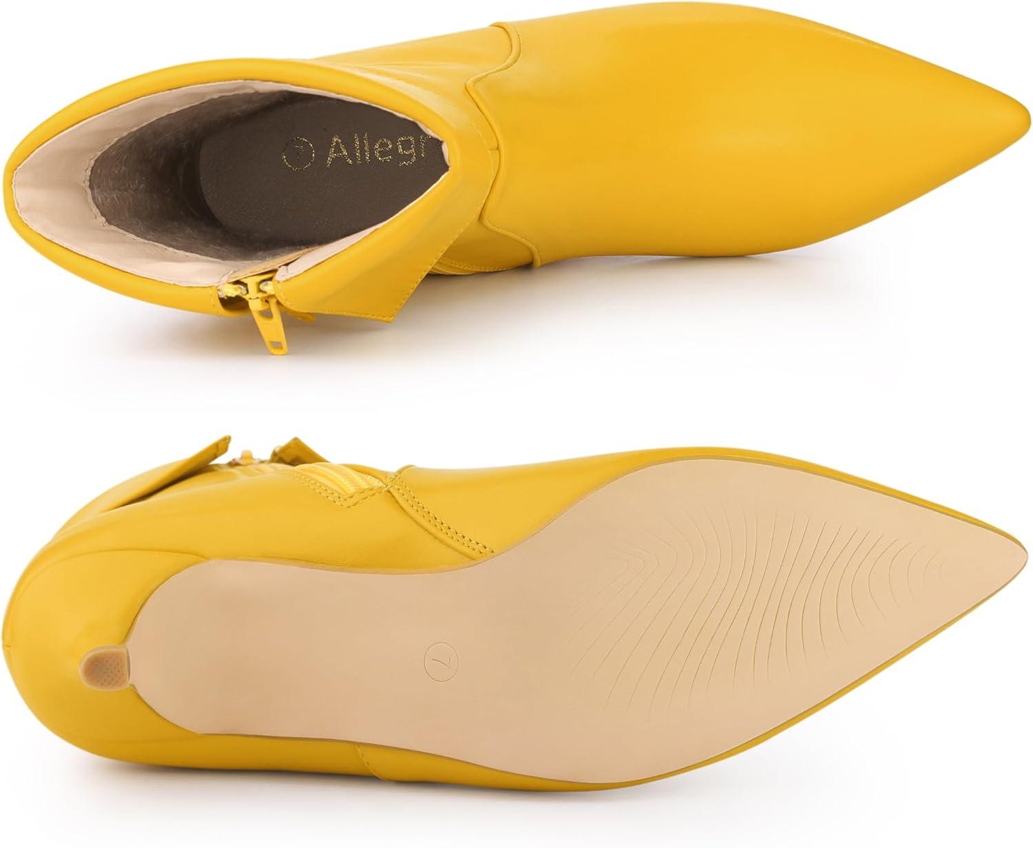 Allegra K Women’s Pointed Toe Side Zip Kitten Heel Ankle Boots(Yellow)