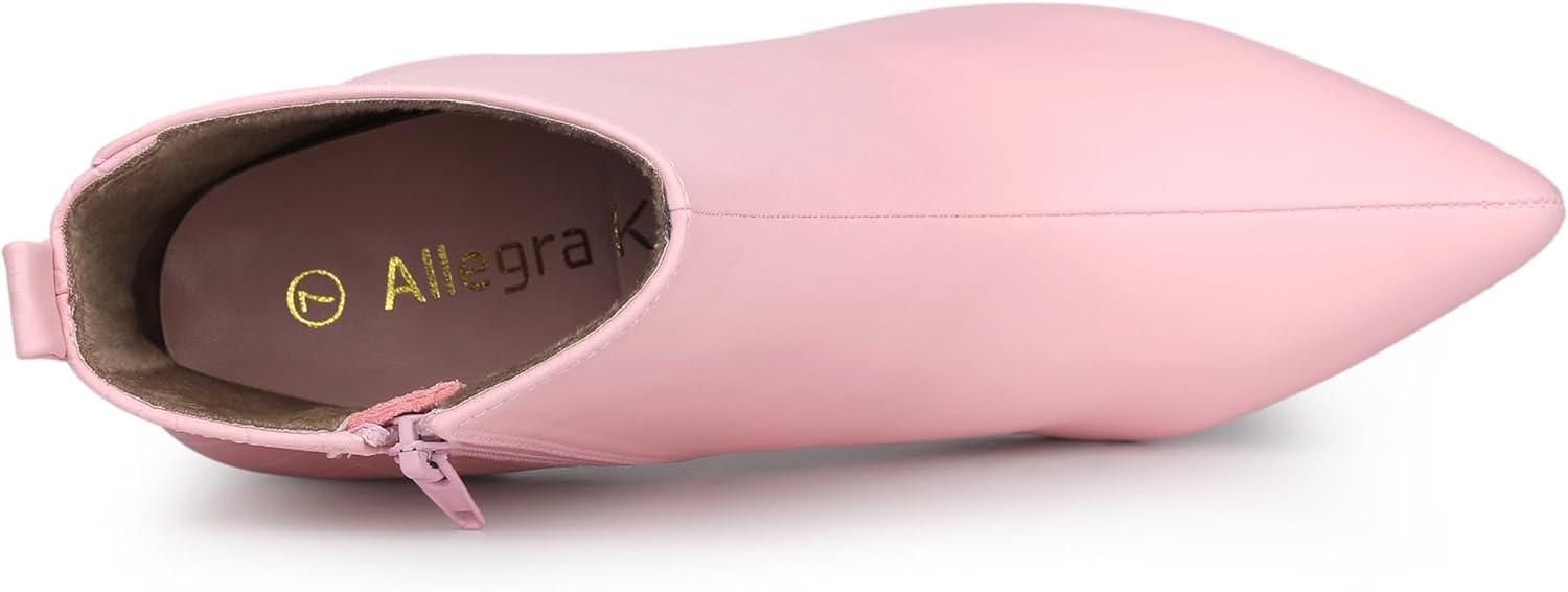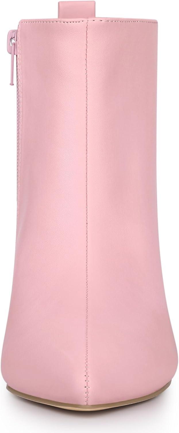 Allegra K Women's Pointed Toe Side Zipper Stiletto Heels Ankle Boots(Pink)