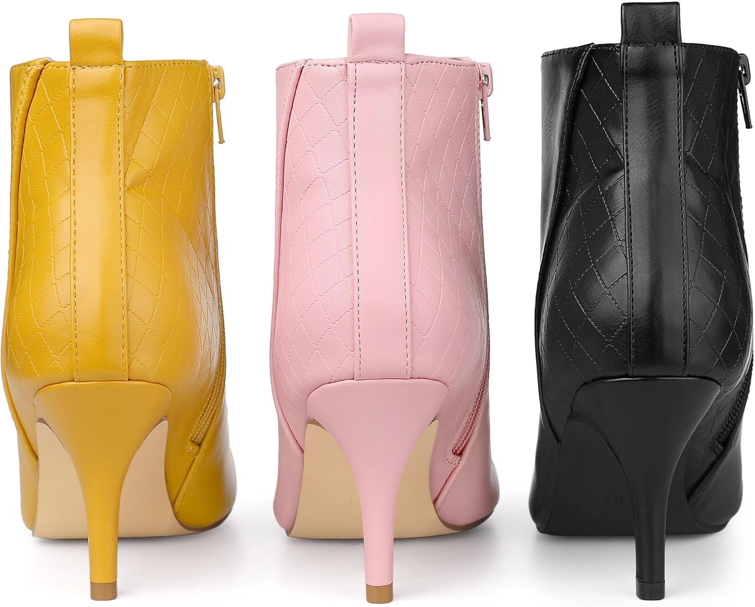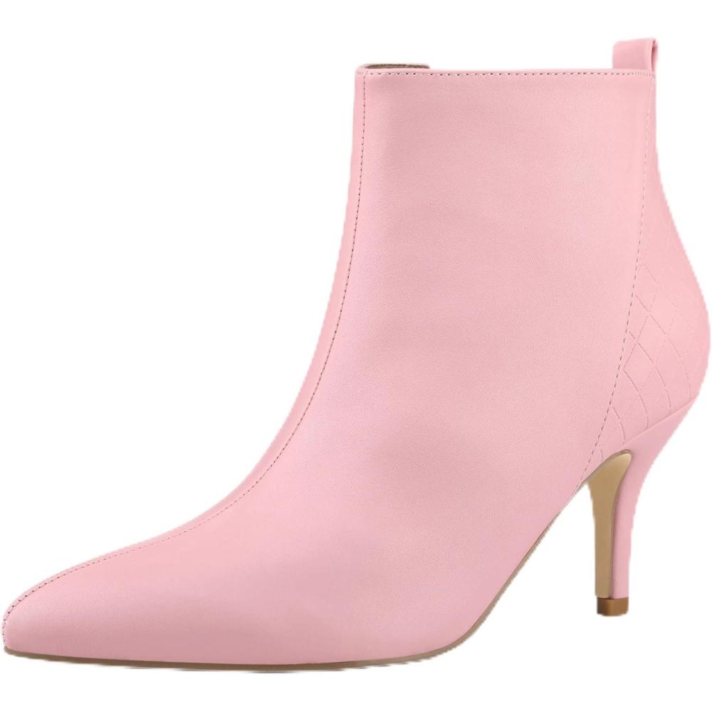 Allegra K Women’s Pointed Toe Side Zipper Stiletto Heels Ankle Boots(Pink)