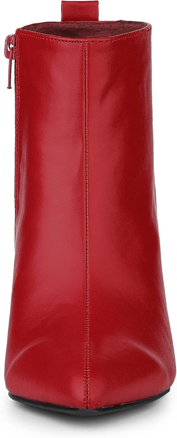 Allegra K Women’s Pointed Toe Side Zipper Stiletto Heels Ankle Boots(Red)