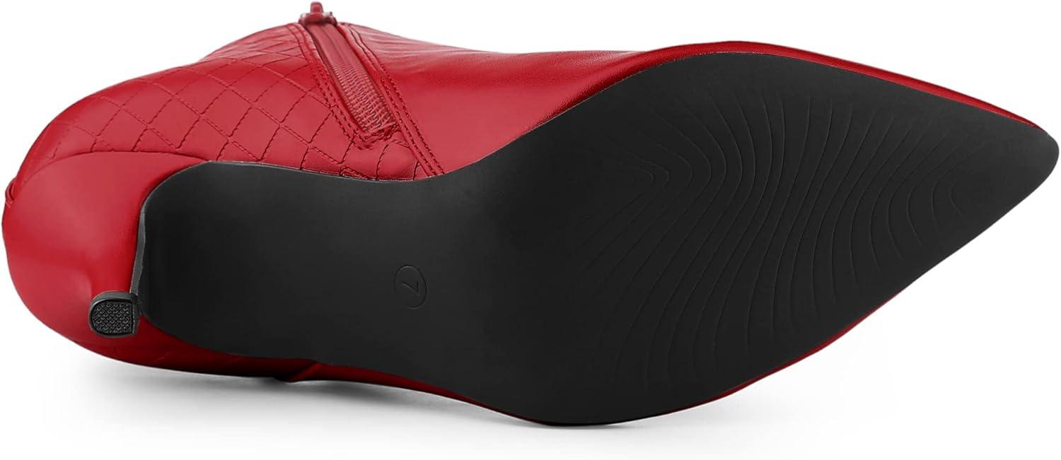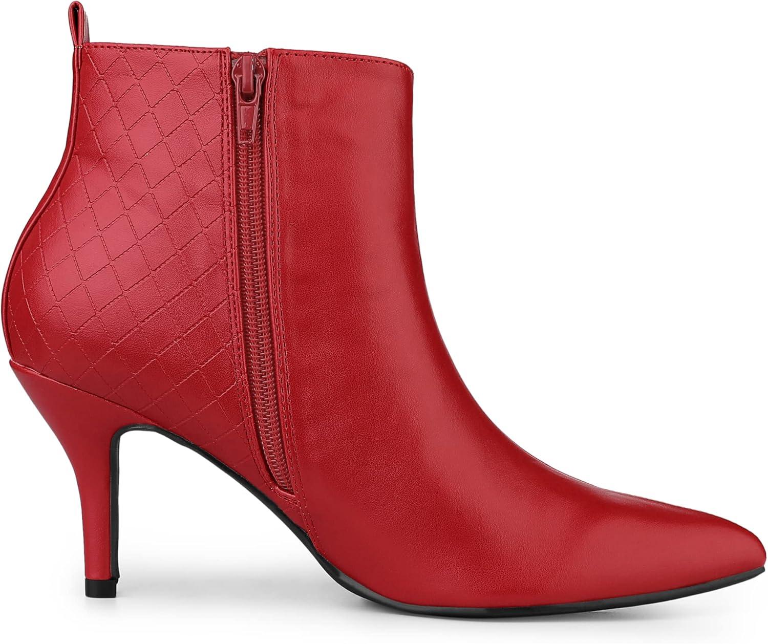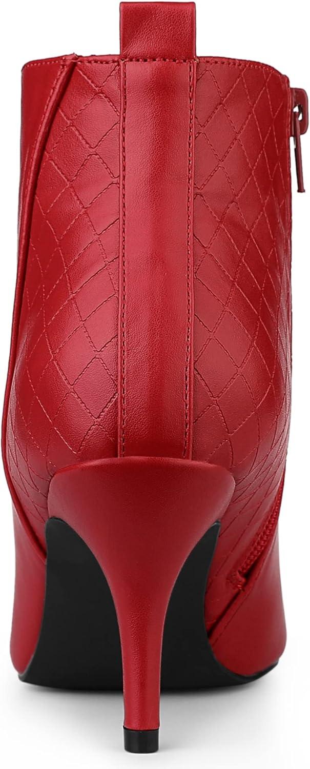 Allegra K Women's Pointed Toe Side Zipper Stiletto Heels Ankle Boots(Red)
