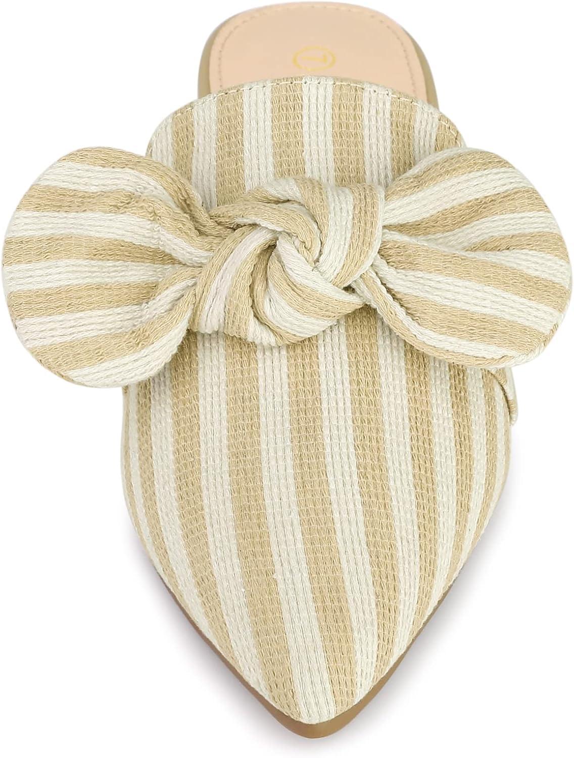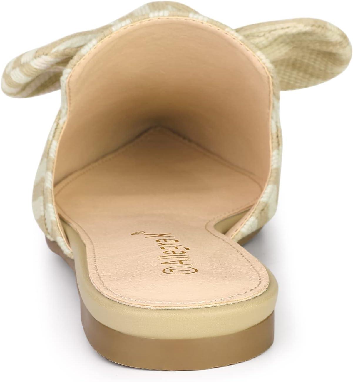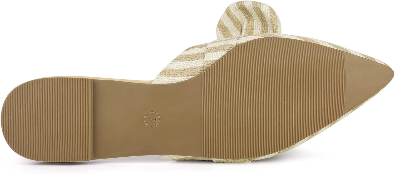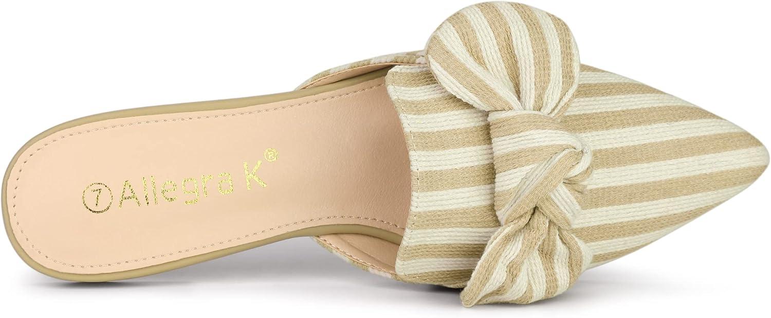 Allegra K Women’s Pointed Toe Slip on Flat Stripe Bow Slides Mules(Beige)