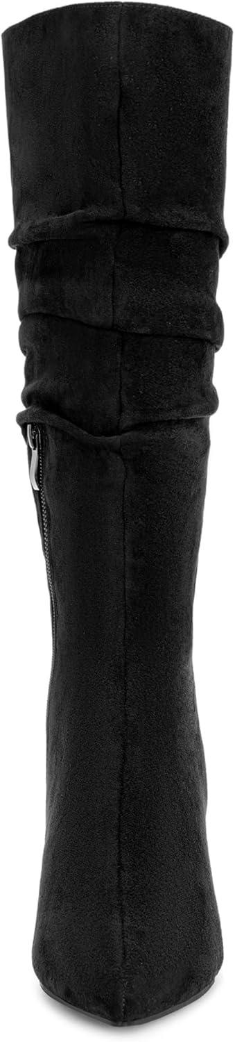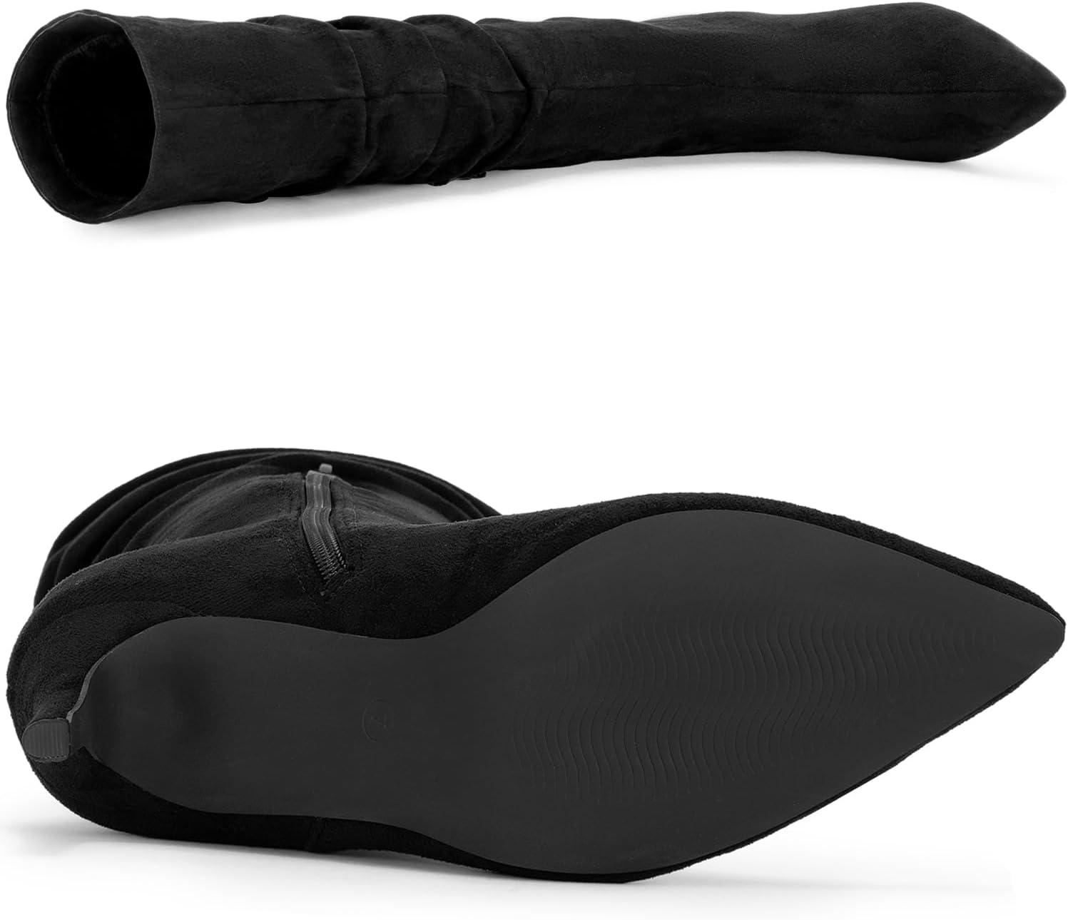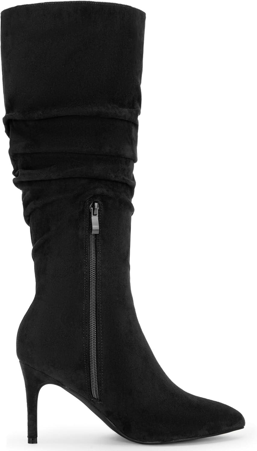 Allegra K Women’s Pointed Toe Slouched Stiletto Heels Knee High Boots(Black)