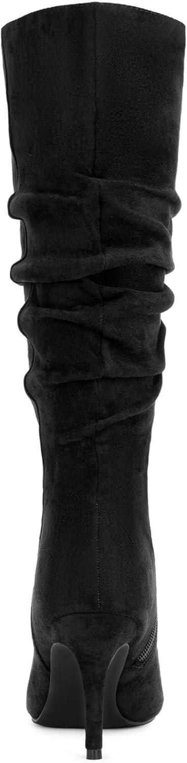 Allegra K Women's Pointed Toe Slouched Stiletto Heels Knee High Boots(Black)