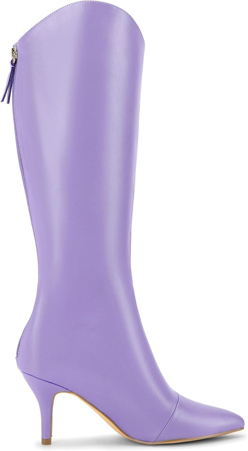 Allegra K Women’s Pointed Toe Stiletto Heel Knee High Boots(Purple)