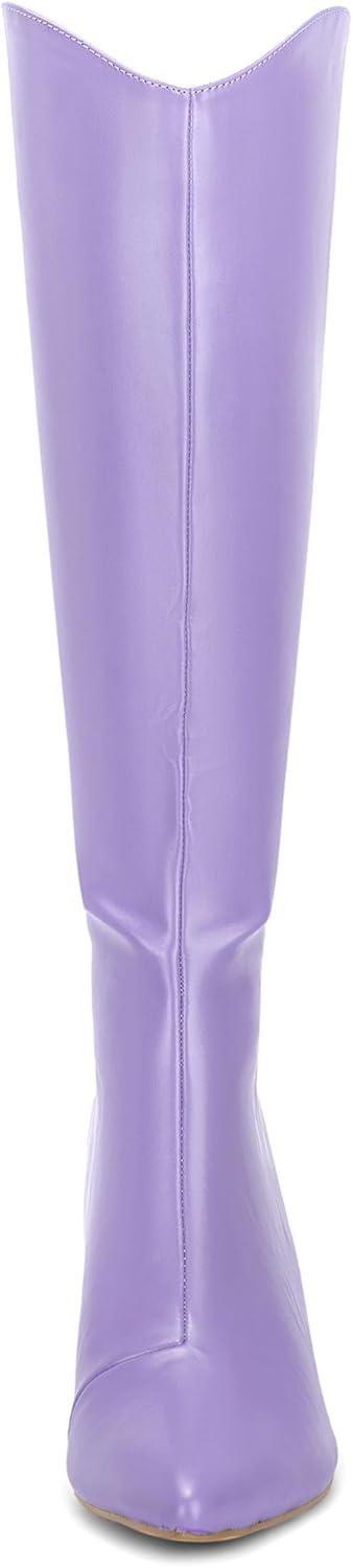 Allegra K Women's Pointed Toe Stiletto Heel Knee High Boots(Purple)