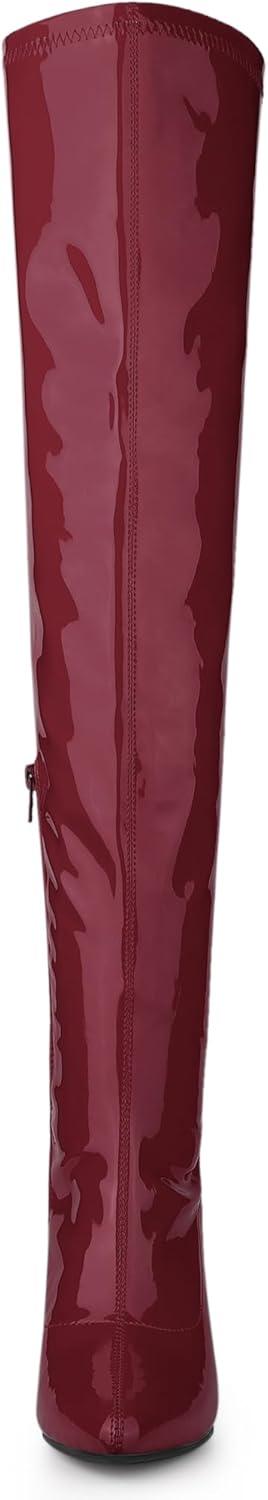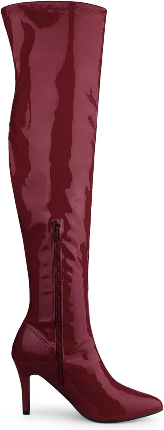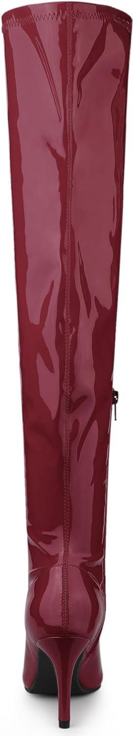Allegra K Women's Pointed Toe Stiletto Heels Over The Knee High Boots(Burgundy)