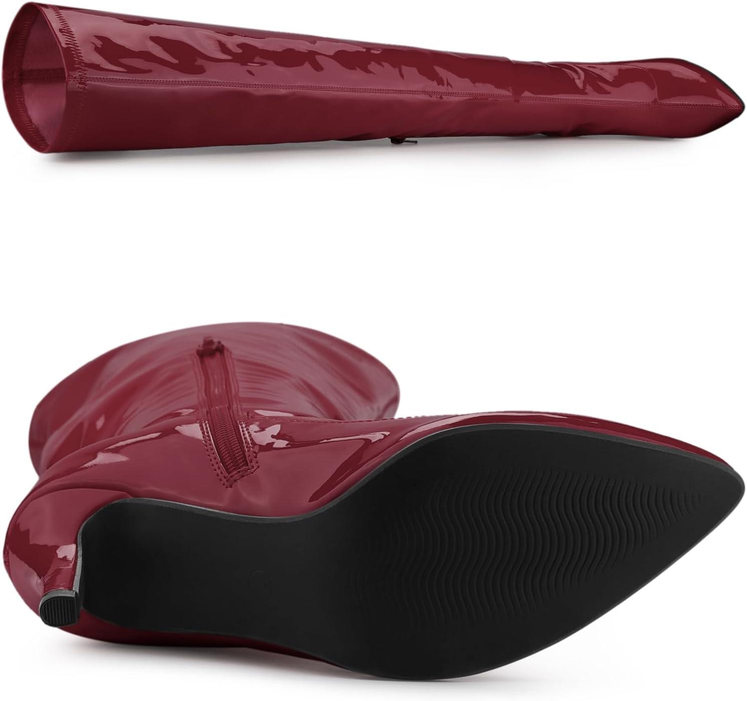 Allegra K Women’s Pointed Toe Stiletto Heels Over The Knee High Boots(Burgundy)