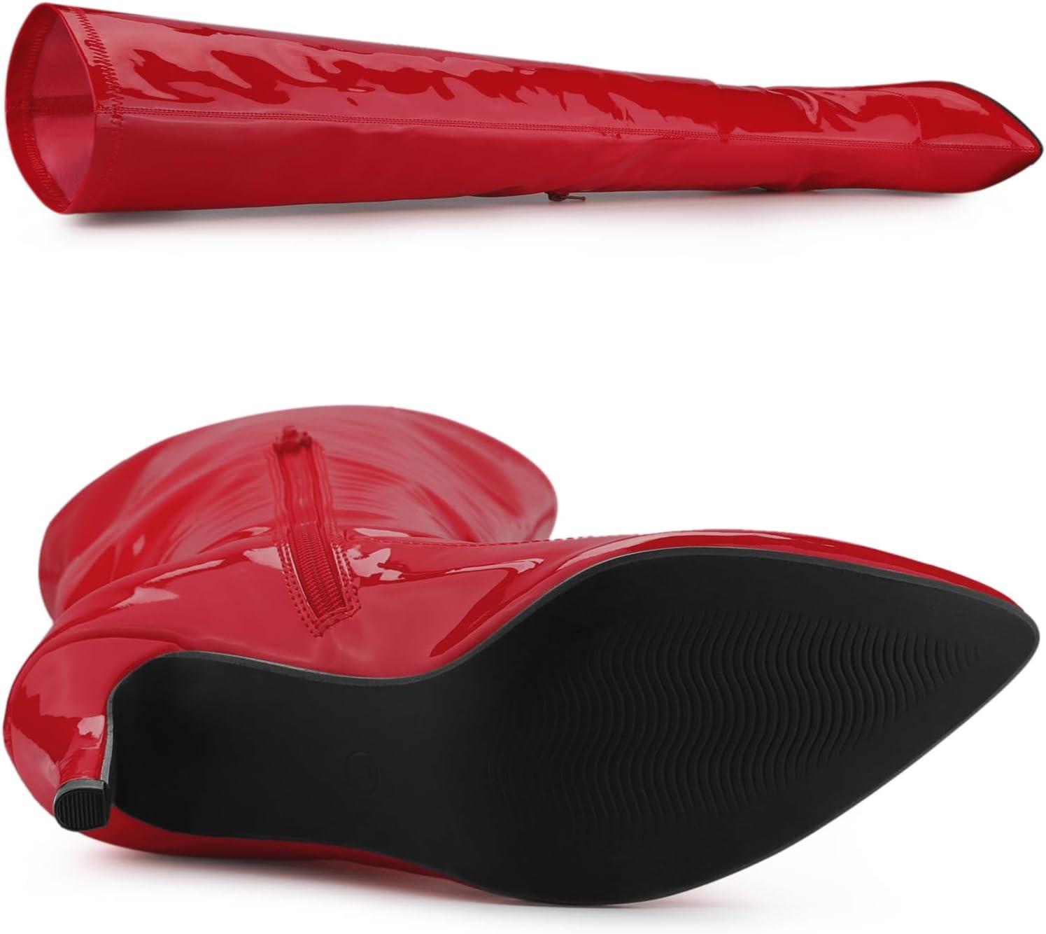Allegra K Women’s Pointed Toe Stiletto Heels Over The Knee High Boots(Red)