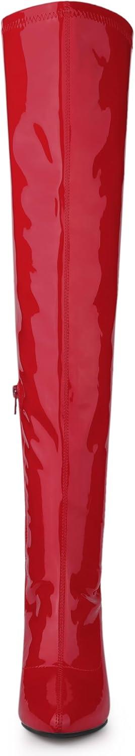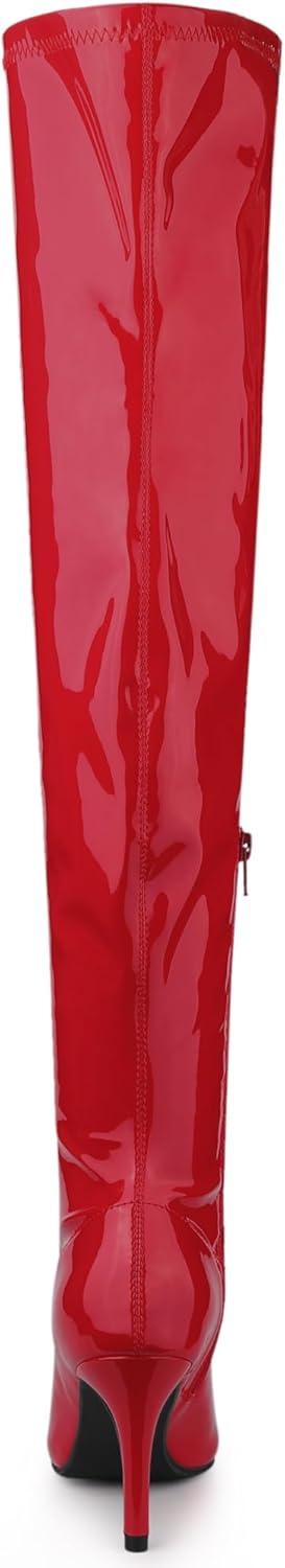 Allegra K Women's Pointed Toe Stiletto Heels Over The Knee High Boots(Red)