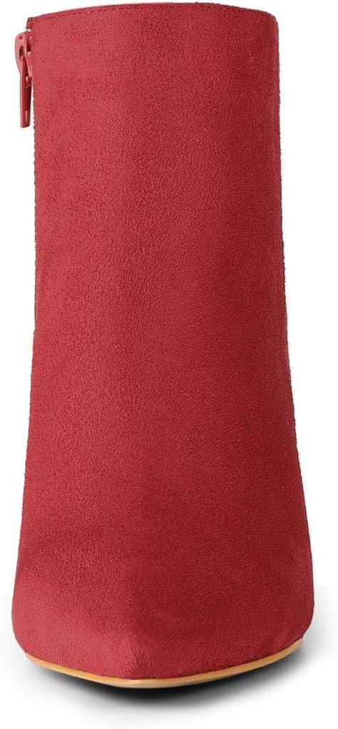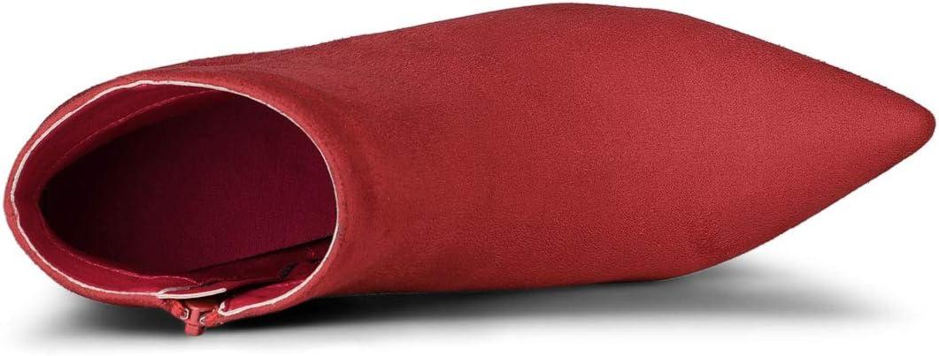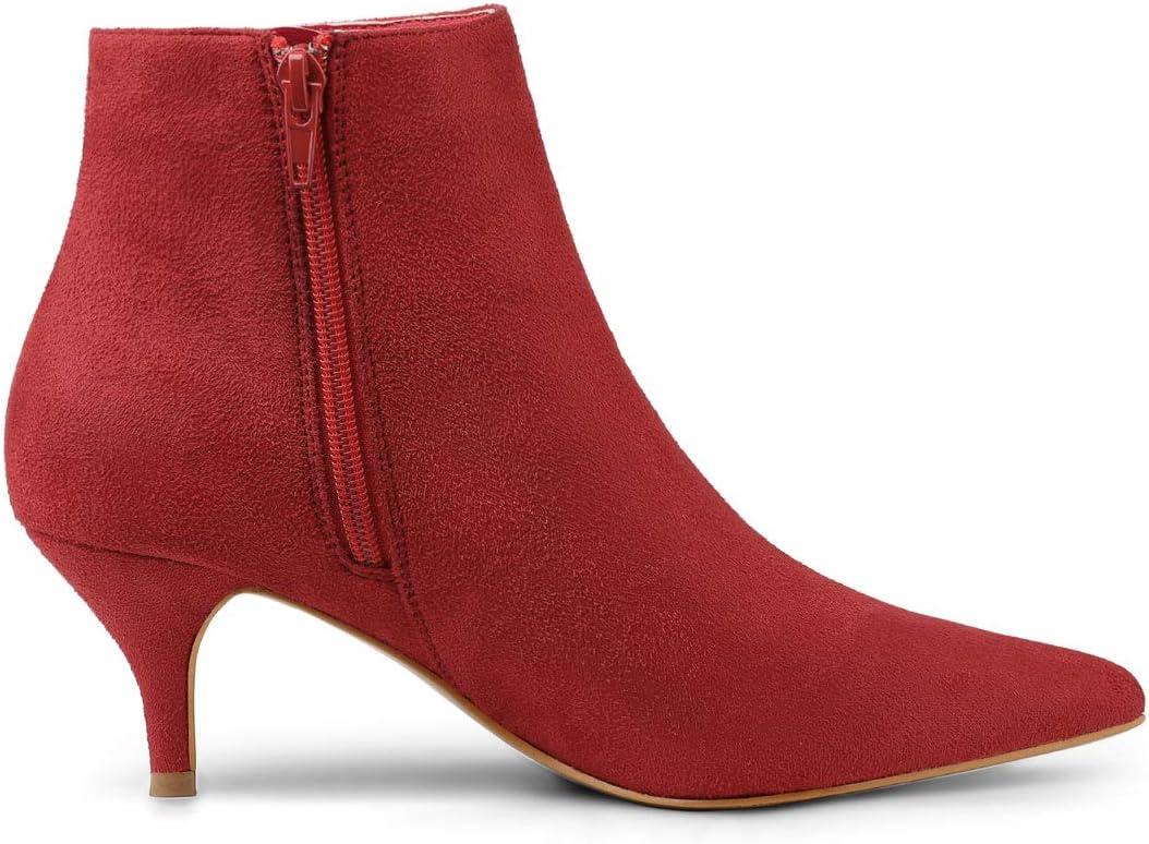 Allegra K Women’s Pointed Toe Zip Stiletto Kitten Heel Ankle Booties(Red)