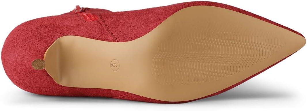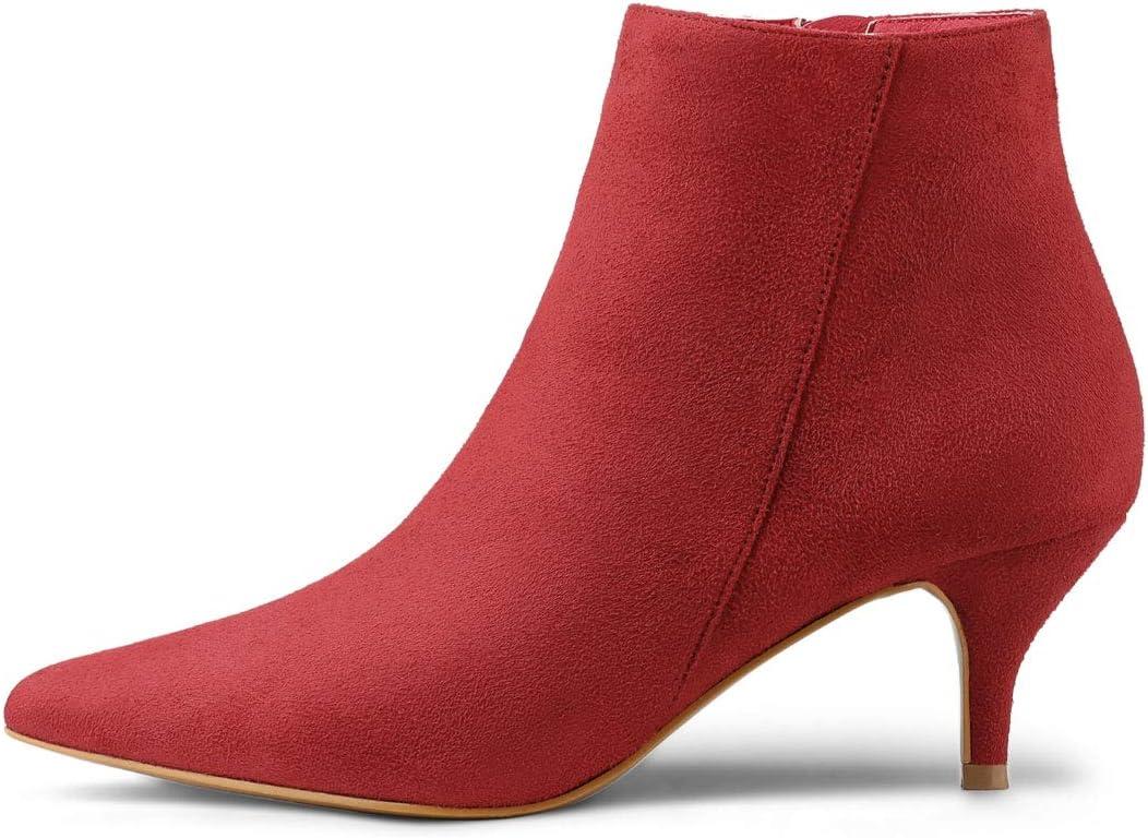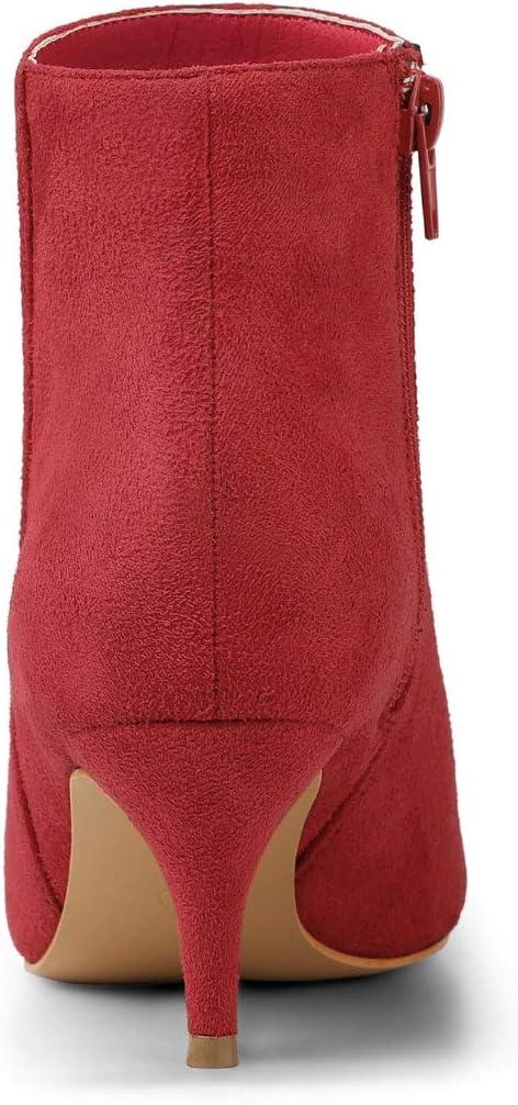 Allegra K Women's Pointed Toe Zip Stiletto Kitten Heel Ankle Booties(Red)