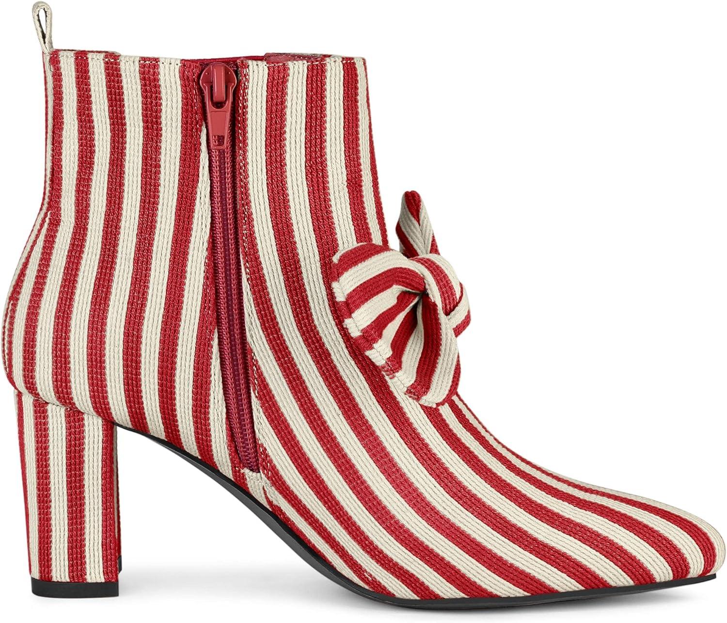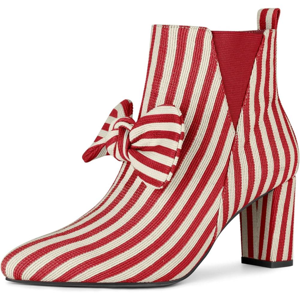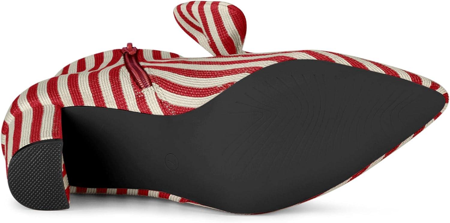 Allegra K Women’s Pointed Toe Zip Striped Chunky Heels Ankle Boots(Red)