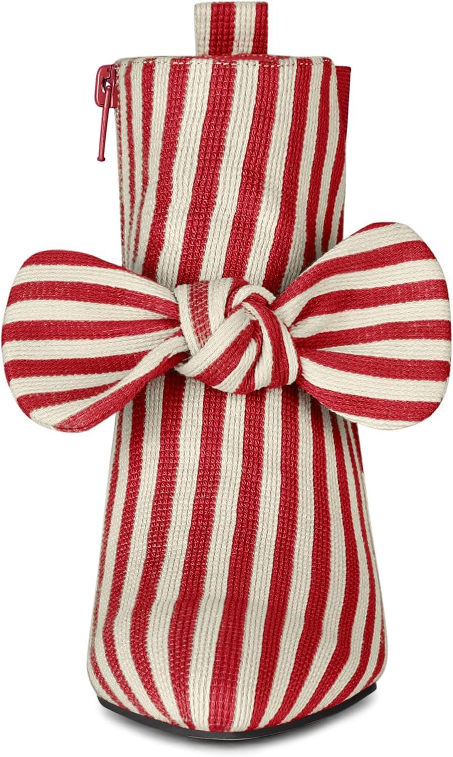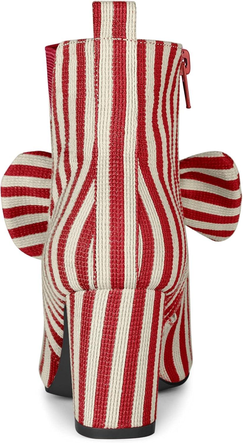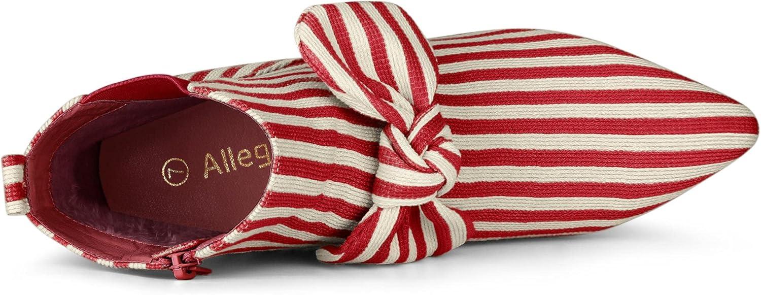 Allegra K Women’s Pointed Toe Zip Striped Chunky Heels Ankle Boots(Red)
