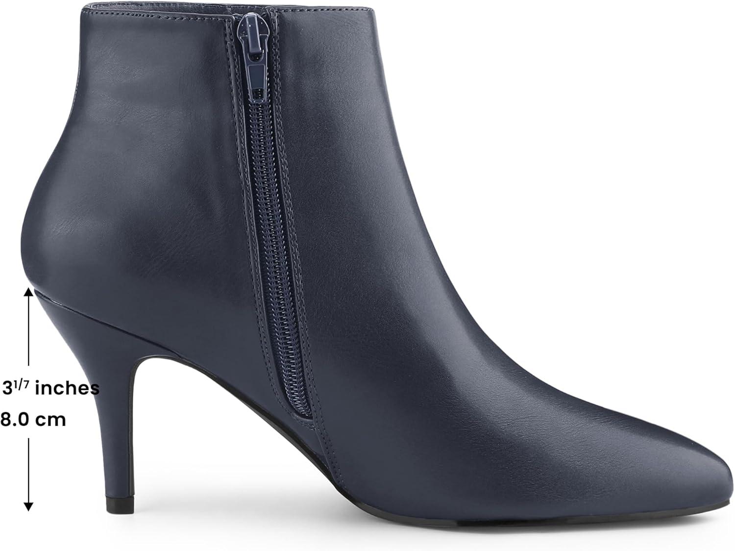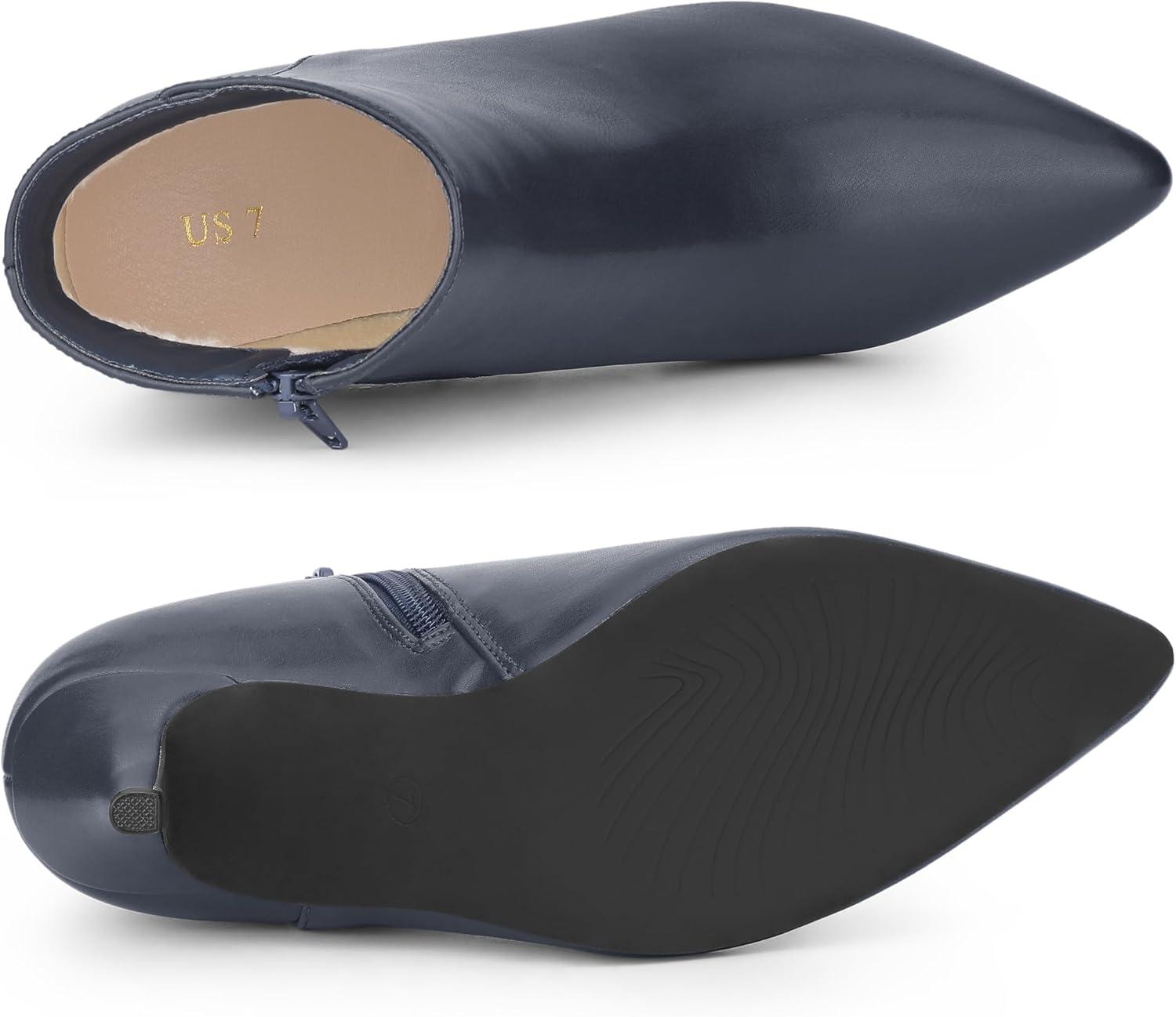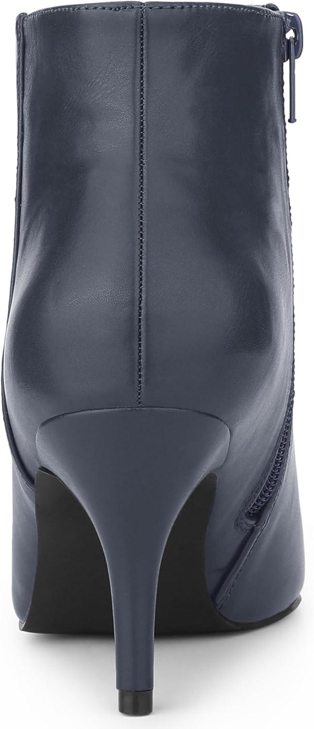 Allegra K Women's Pointed Toe Zipper Stiletto Heel Ankle Boots(Navy Blue)