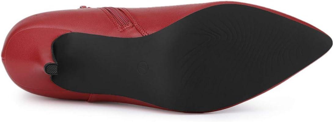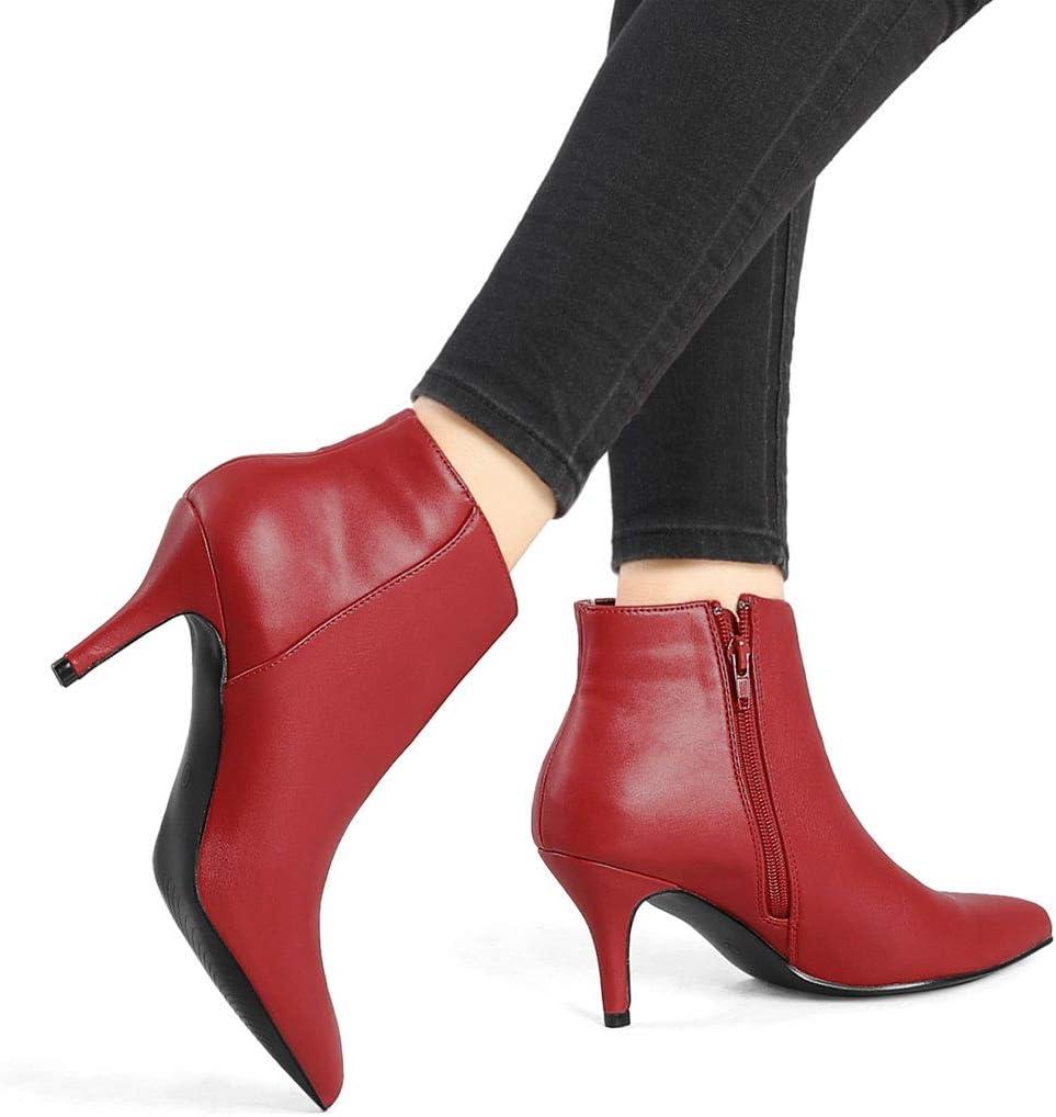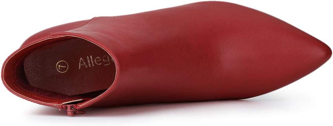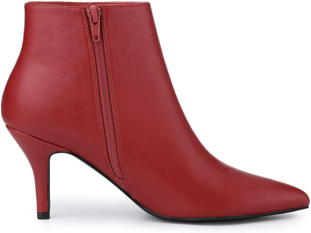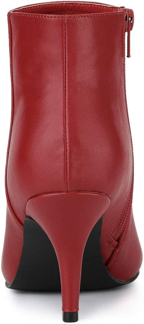 Allegra K Women's Pointed Toe Zipper Stiletto Heel Ankle Boots(Red)