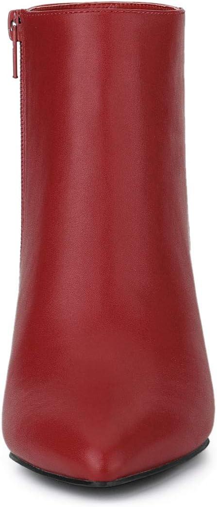 Allegra K Women’s Pointed Toe Zipper Stiletto Heel Ankle Boots(Red)