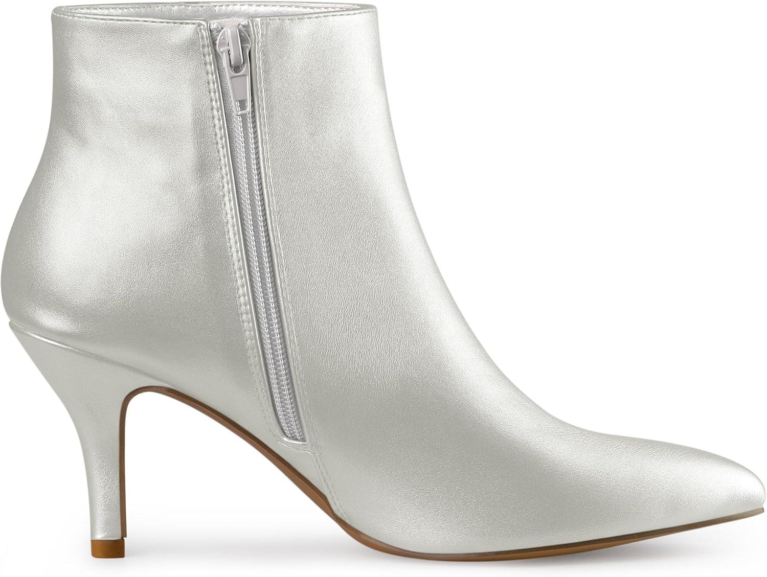 Allegra K Women’s Pointed Toe Zipper Stiletto Heel Ankle Boots(Silver)