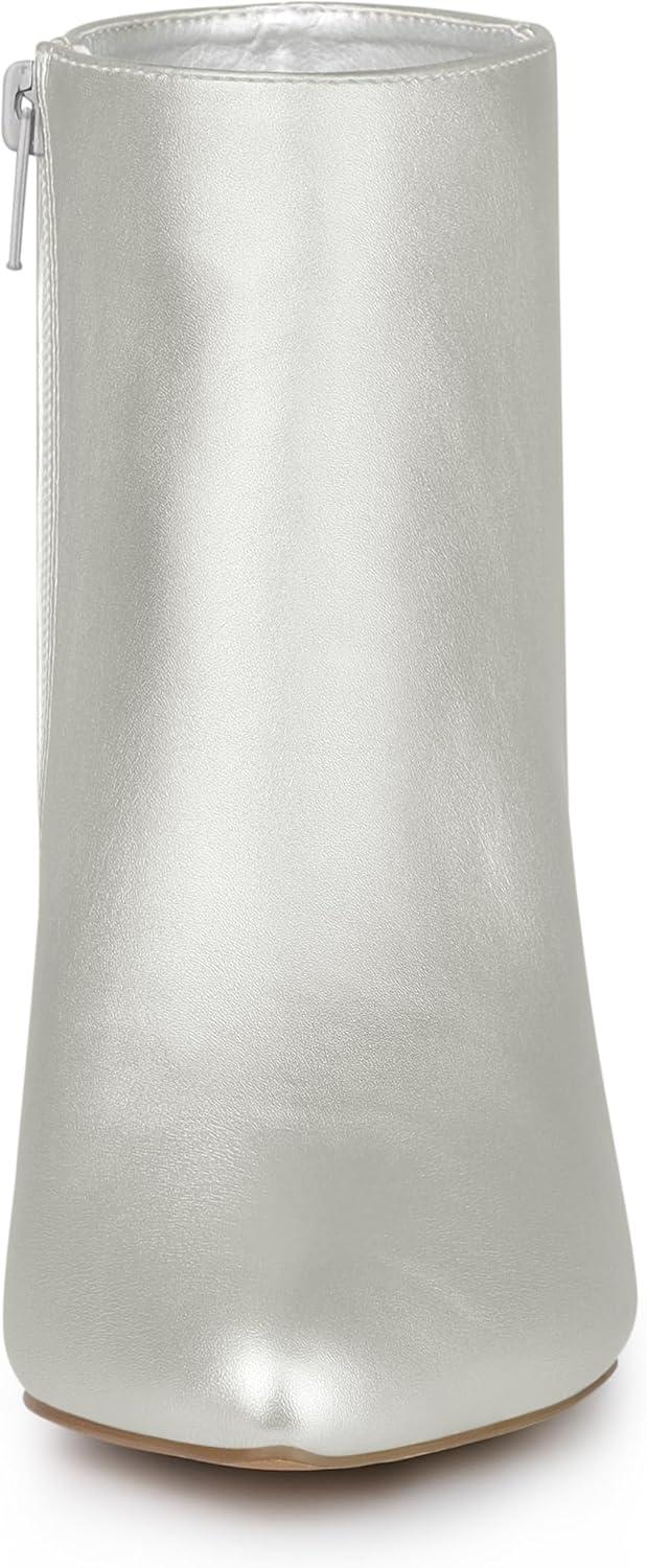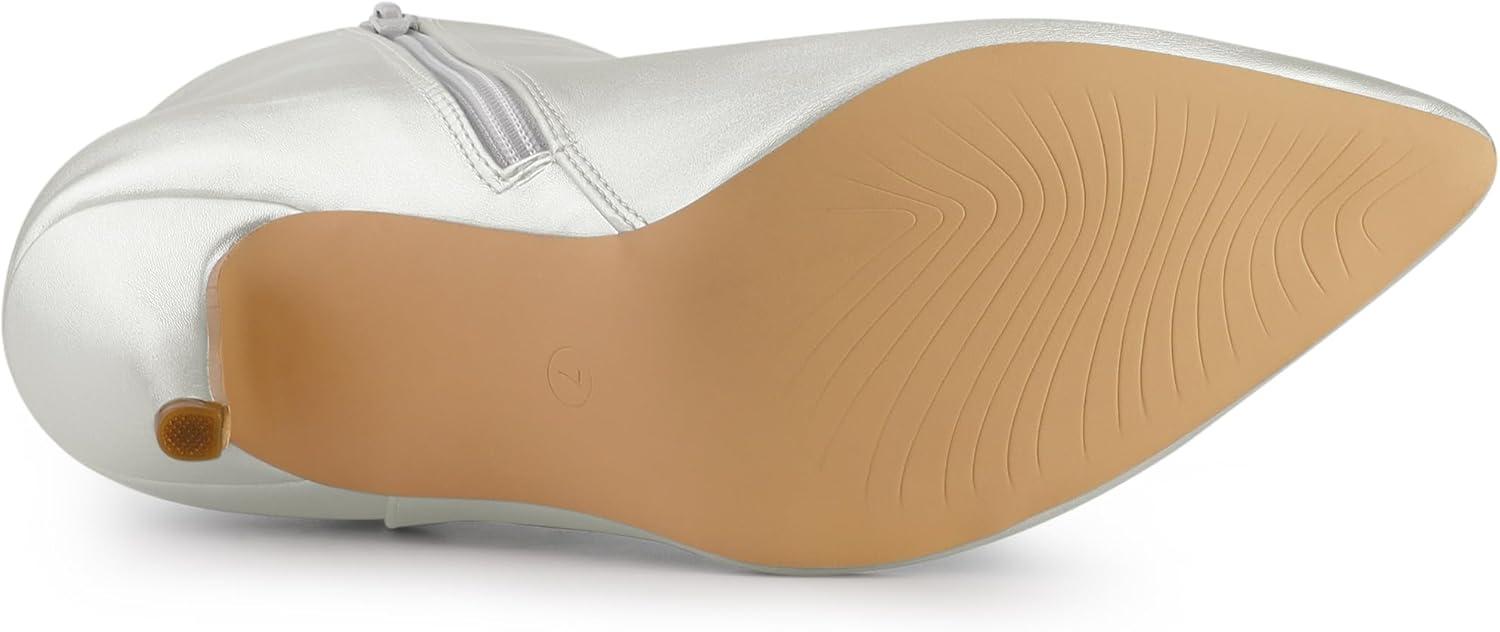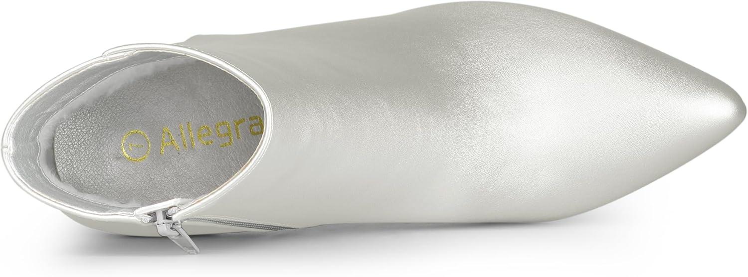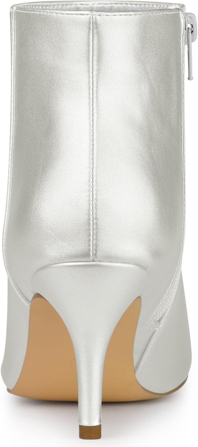 Allegra K Women's Pointed Toe Zipper Stiletto Heel Ankle Boots(Silver)