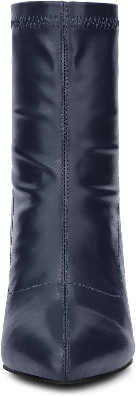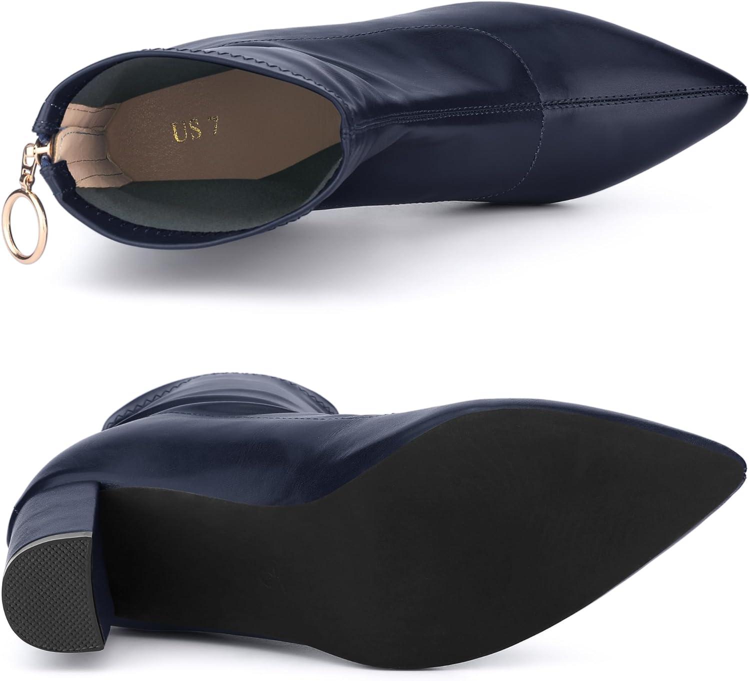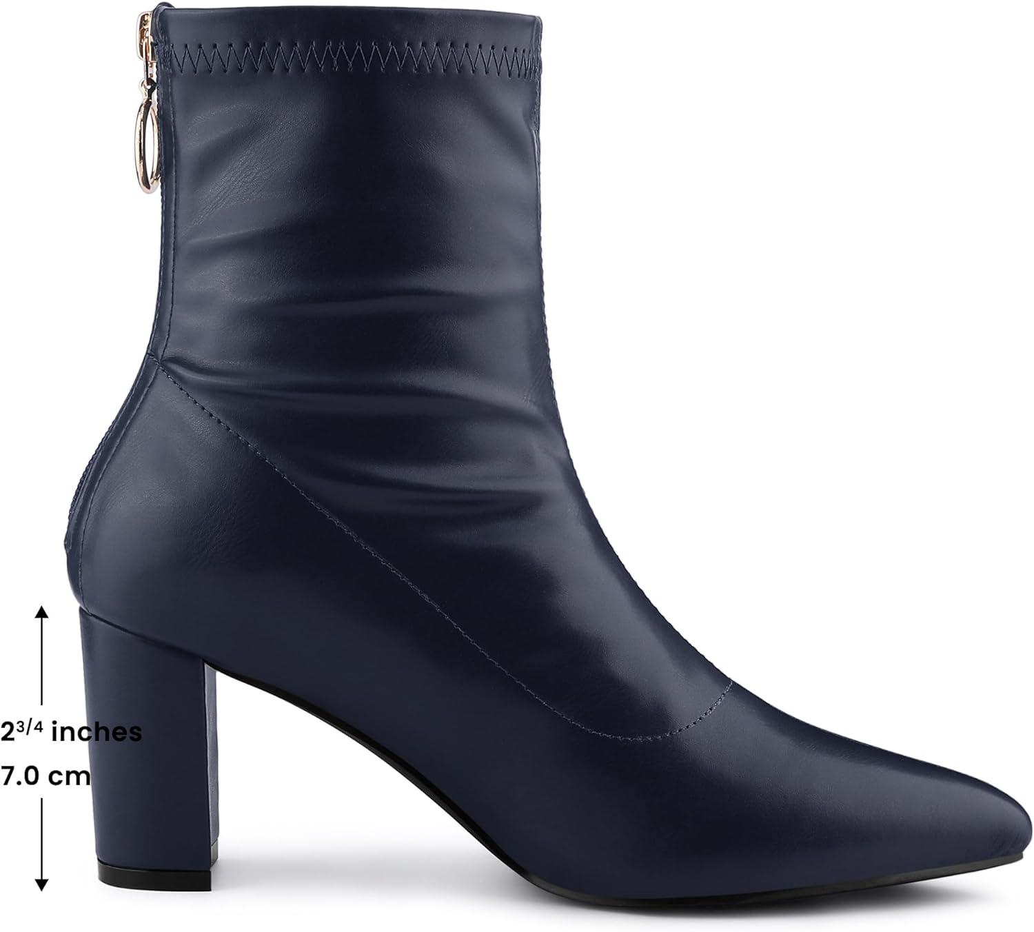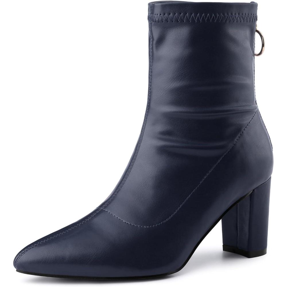 Allegra K Women’s Pointy Toe Back Zip Block Heel Ankle Boots(Dark Blue)