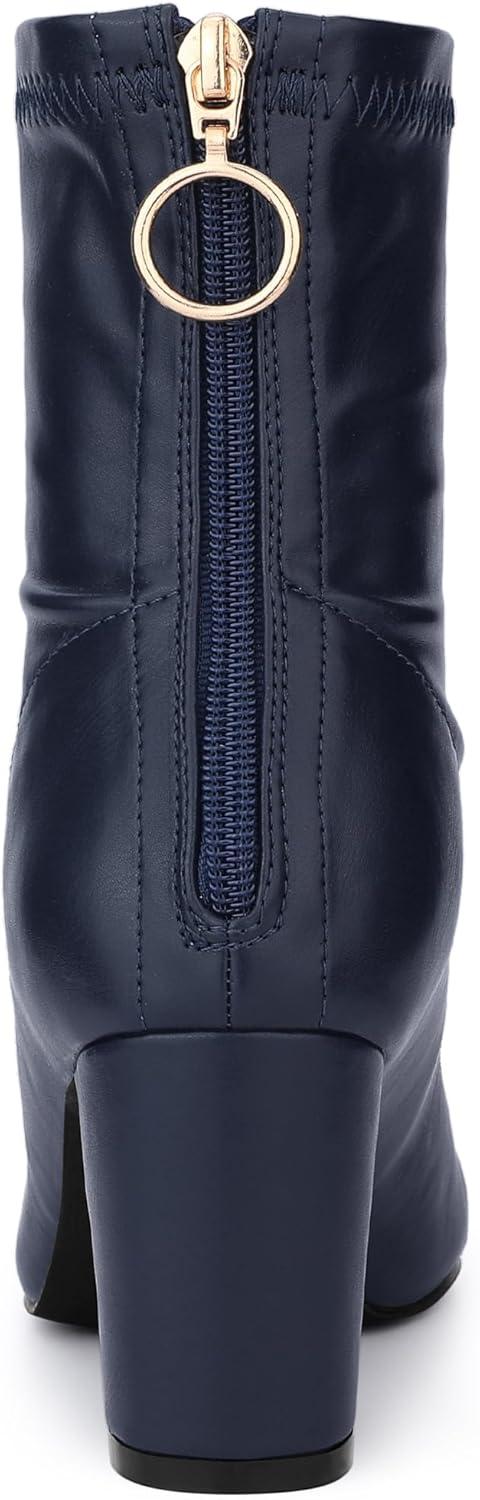 Allegra K Women's Pointy Toe Back Zip Block Heel Ankle Boots(Dark Blue)