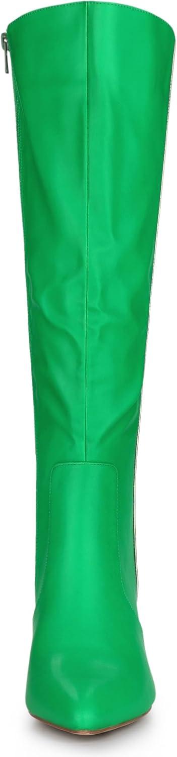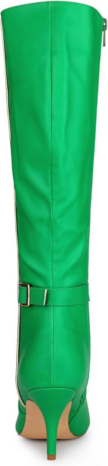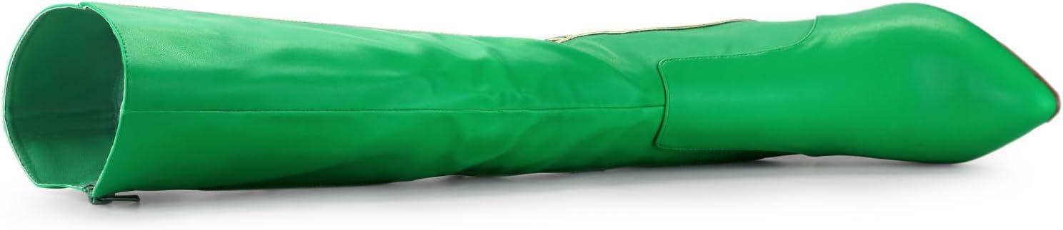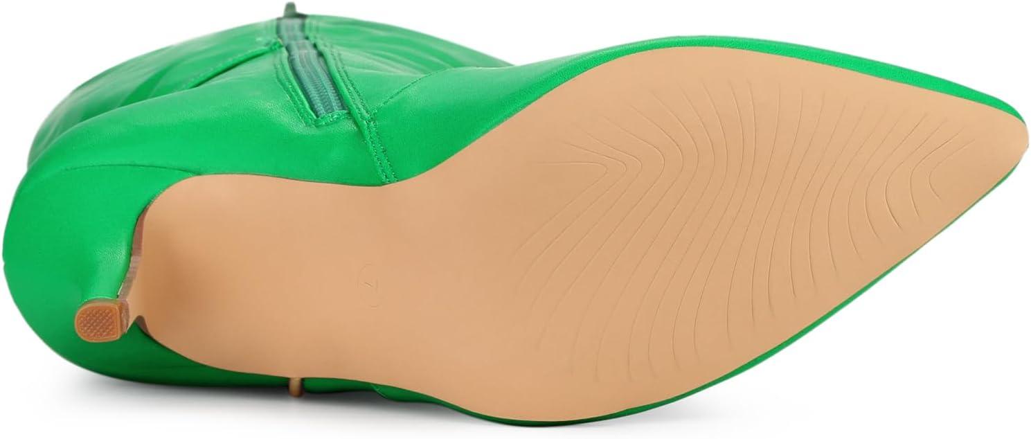 Allegra K Women's Pointy Toe Buckle Stiletto Heel Knee High Boots(Grass Green)