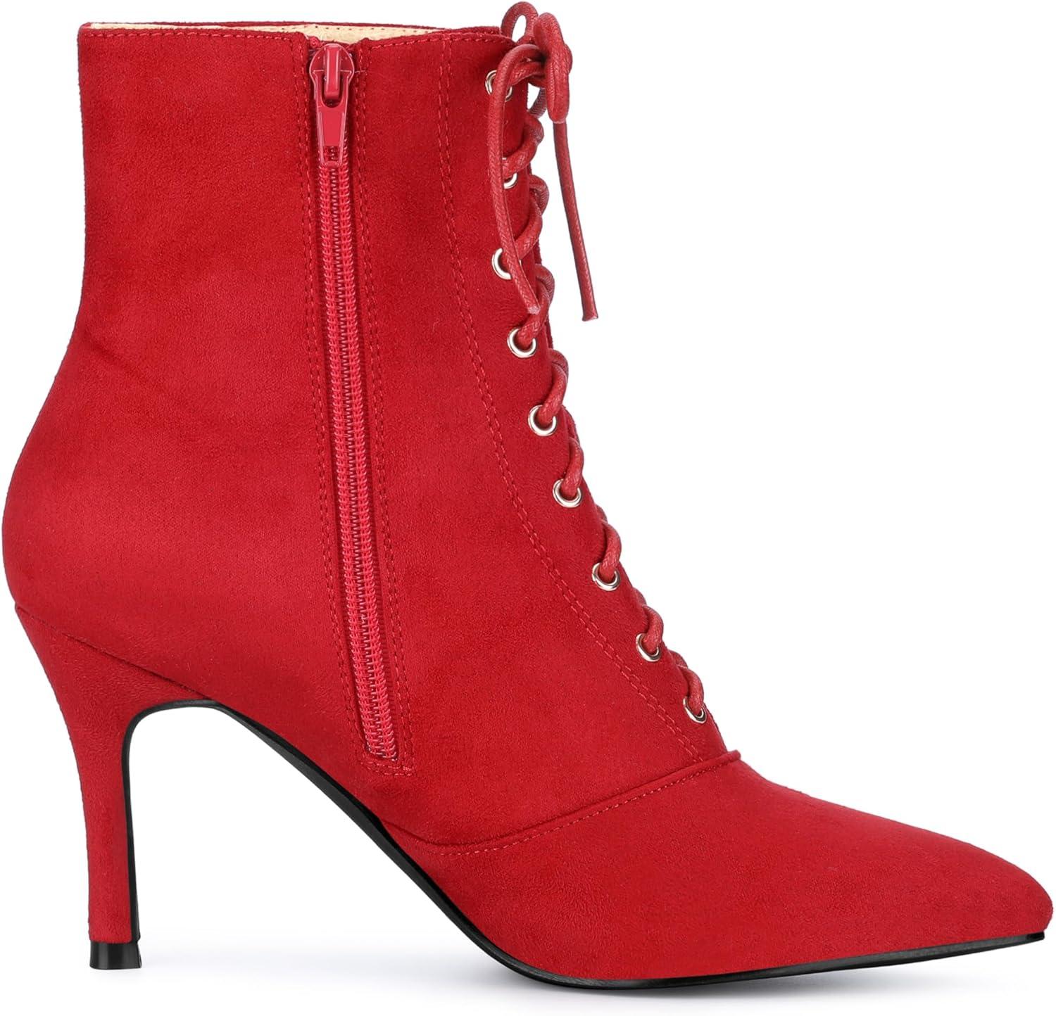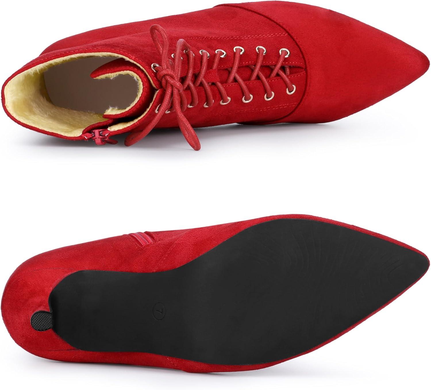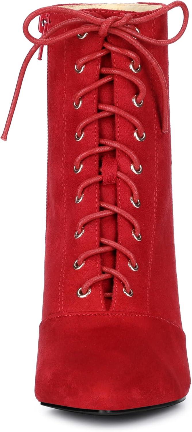 Allegra K Women’s Pointy Toe Side Zip Lace Up Stiletto Heels Ankle Boots(Red)
