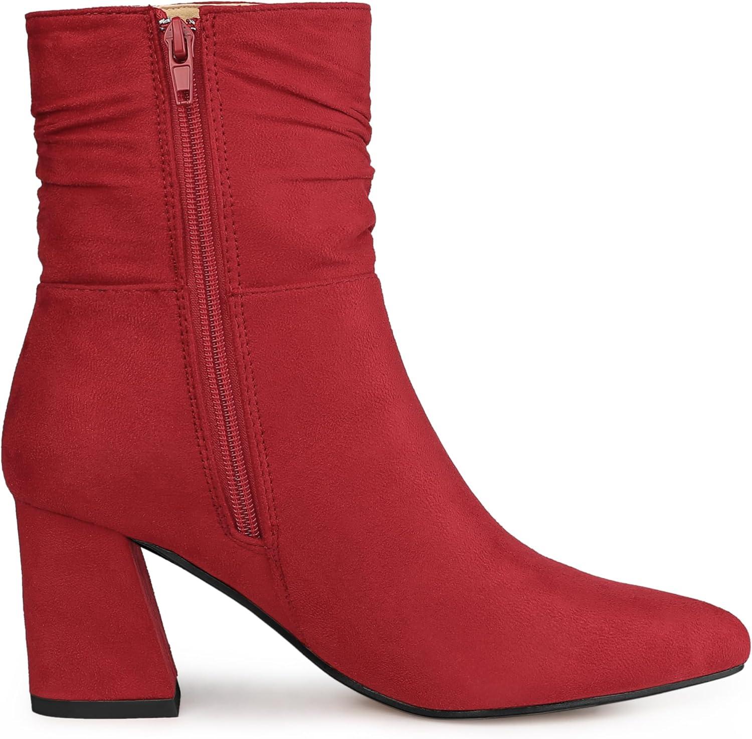 Allegra K Women's Pointy Toe Slouched Zipper Chunky Heel Ankle Boots(Red)