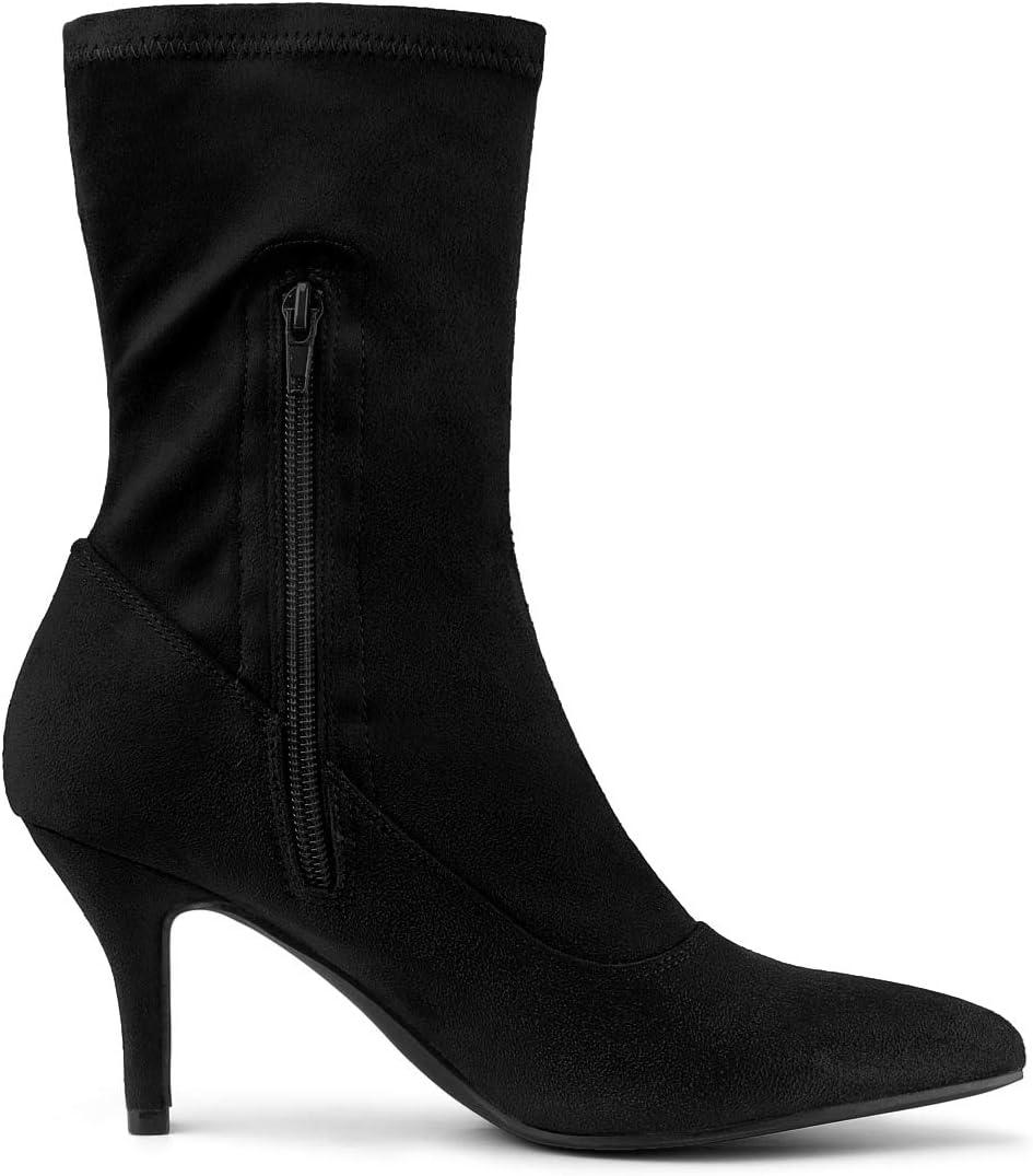Allegra K Women’s Pointy Toe Stretch Sock Stiletto Heels Ankle Boots(Black)