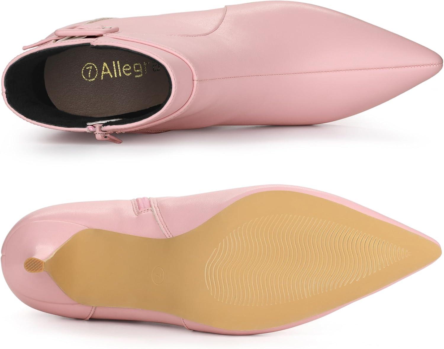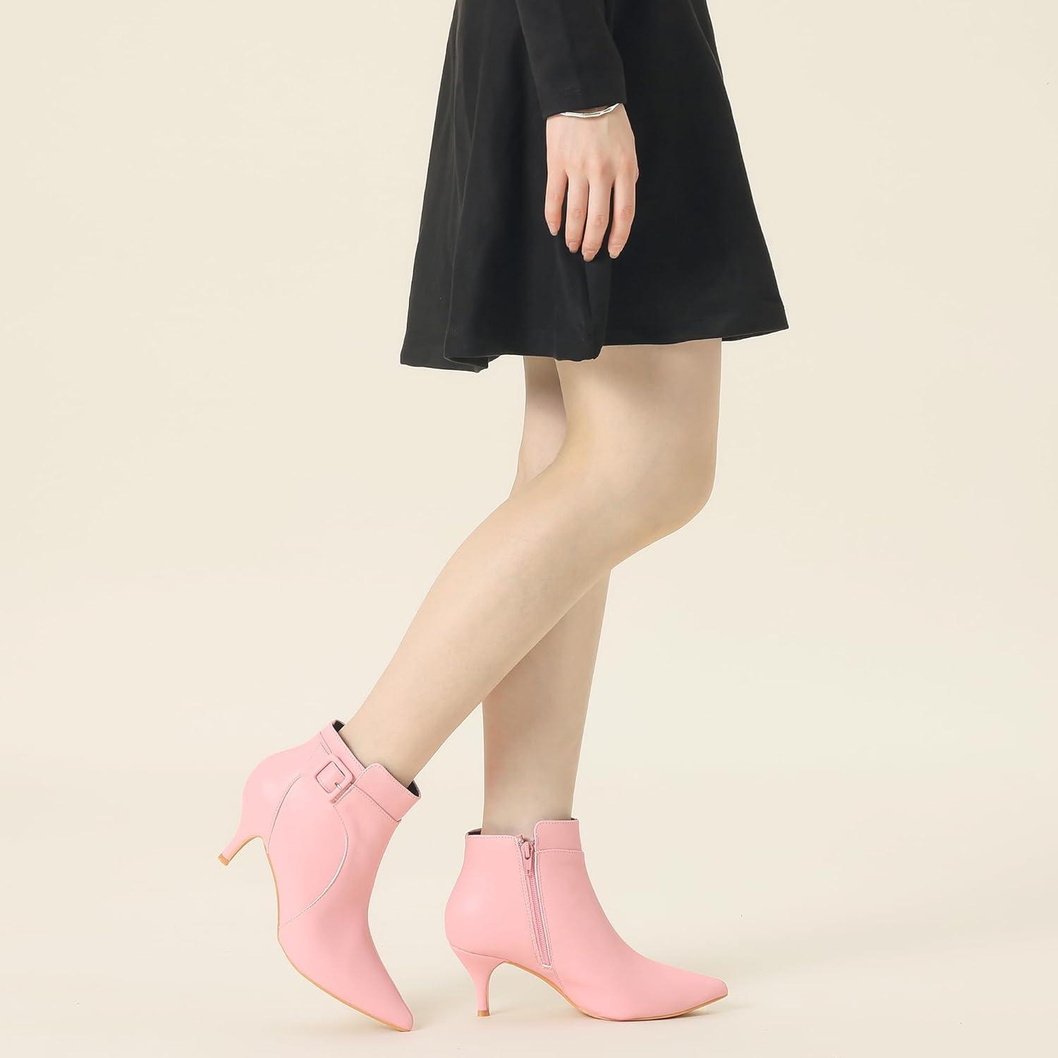 Allegra K Women’s Pointy Toe Zipper Buckle Decor Kitten Heels Ankle Boots(Pink)