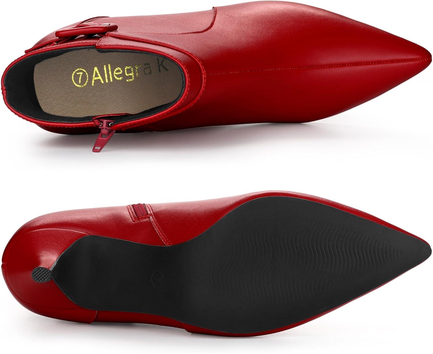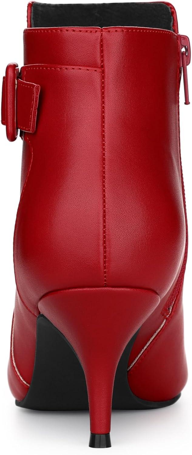 Allegra K Women’s Pointy Toe Zipper Buckle Decor Kitten Heels Ankle Boots(Red)