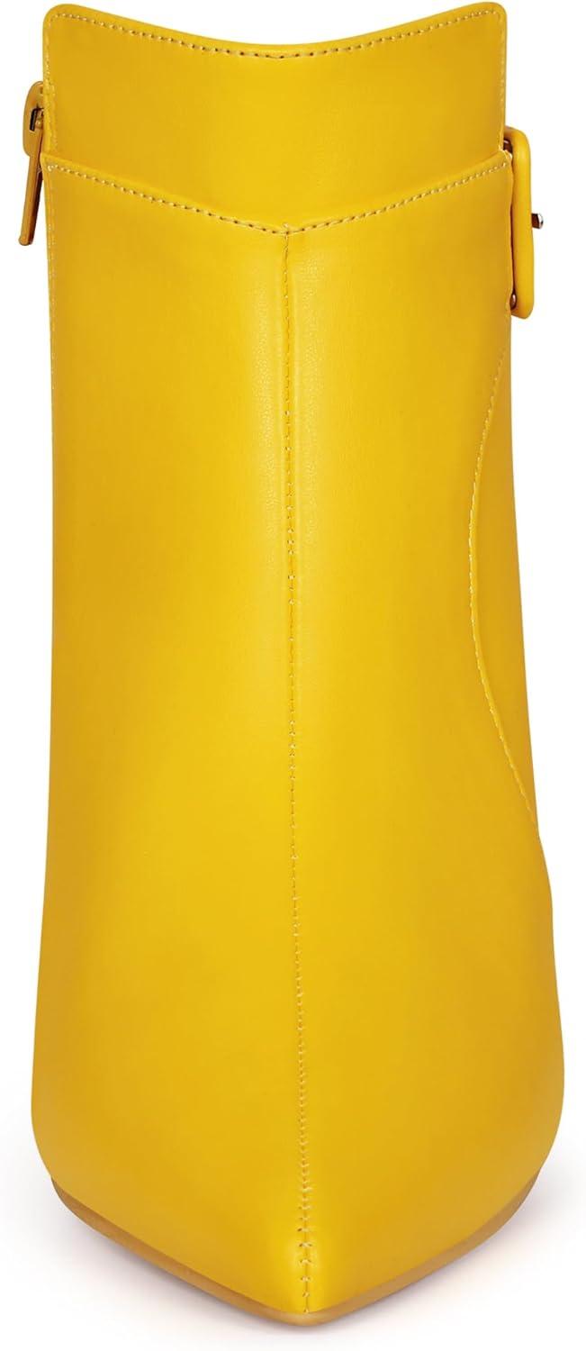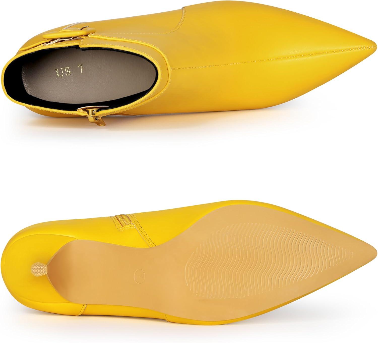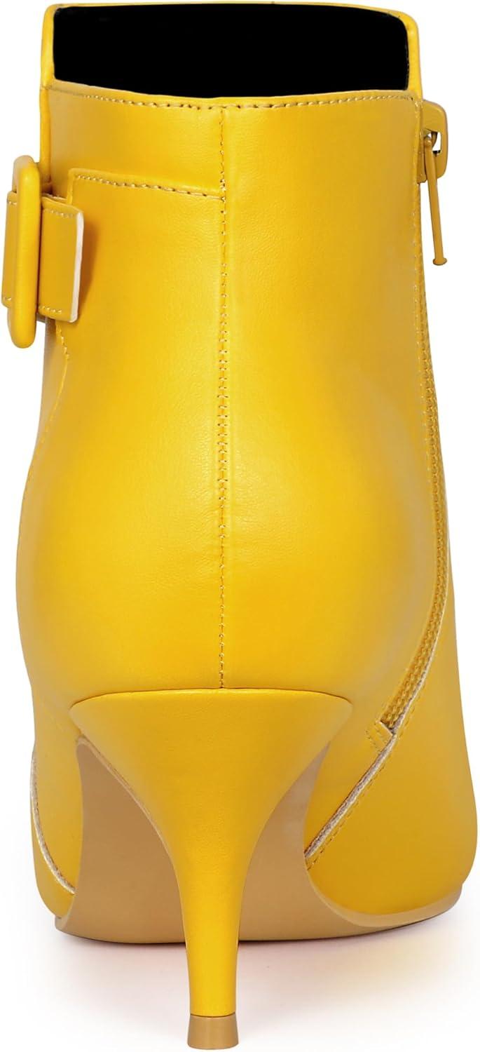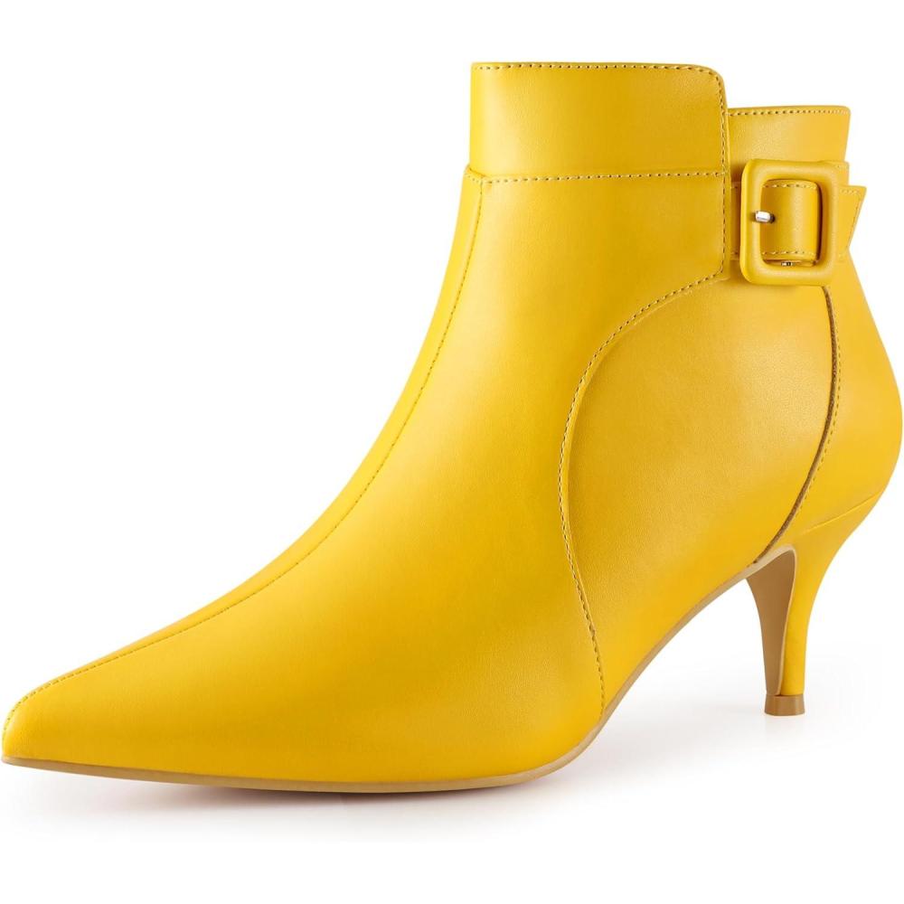 Allegra K Women’s Pointy Toe Zipper Buckle Decor Kitten Heels Ankle Boots(Yellow)